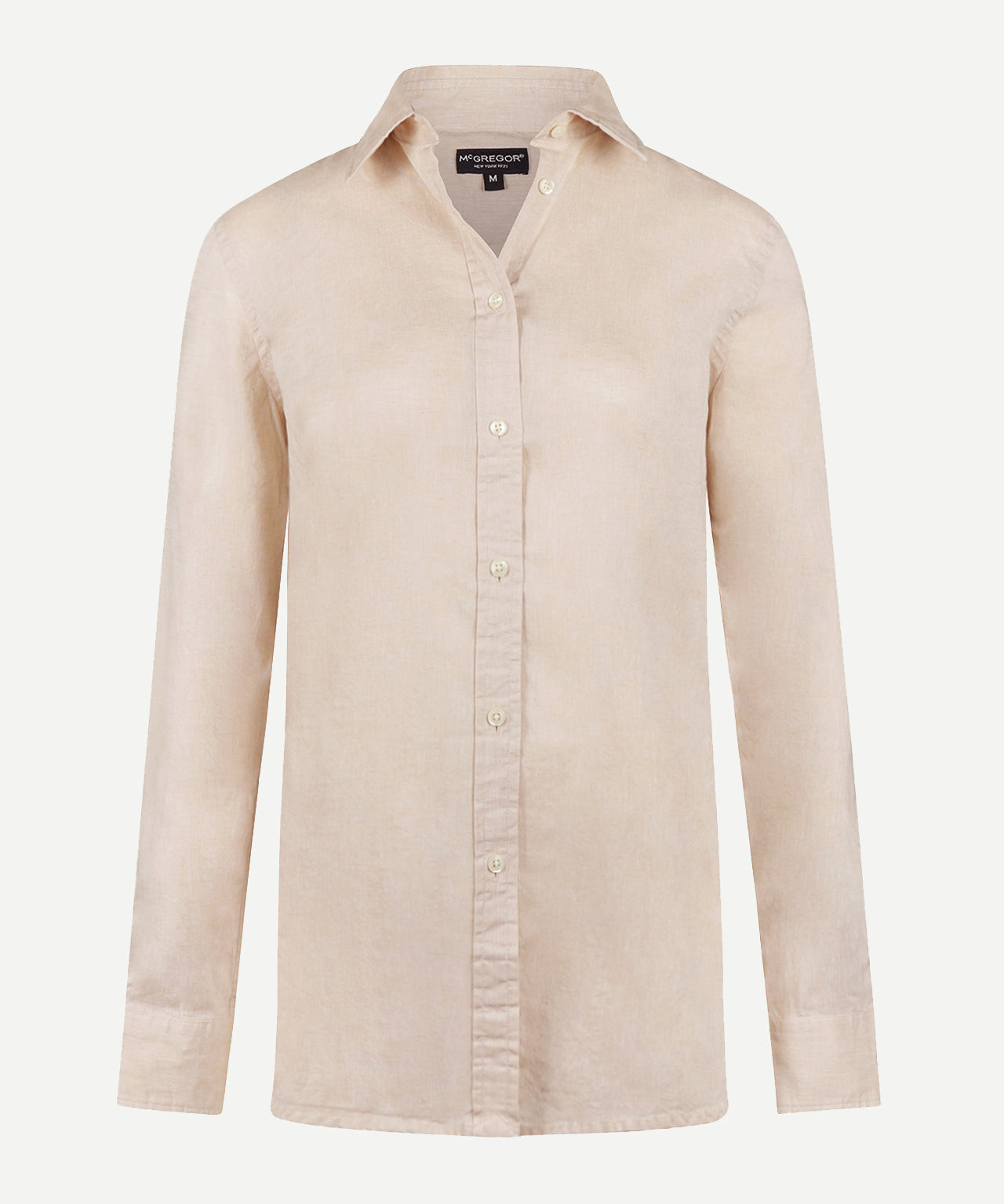 Deze katoen-linnen blouse is een ideale keuze voor warmere dagen. De mix van katoen en linnen zorgt voor een luchtig en ademend draaggevoel, terwijl de stof licht en comfortabel aanvoelt. Met een regular fit pasvorm, lange mouwen en een klassieke kraag heeft de blouse een tijdloze en verzorgde uitstraling. Het minimalistische design en het subtiele McGregor-logo maken dit een veelzijdig item dat eenvoudig te combineren is.