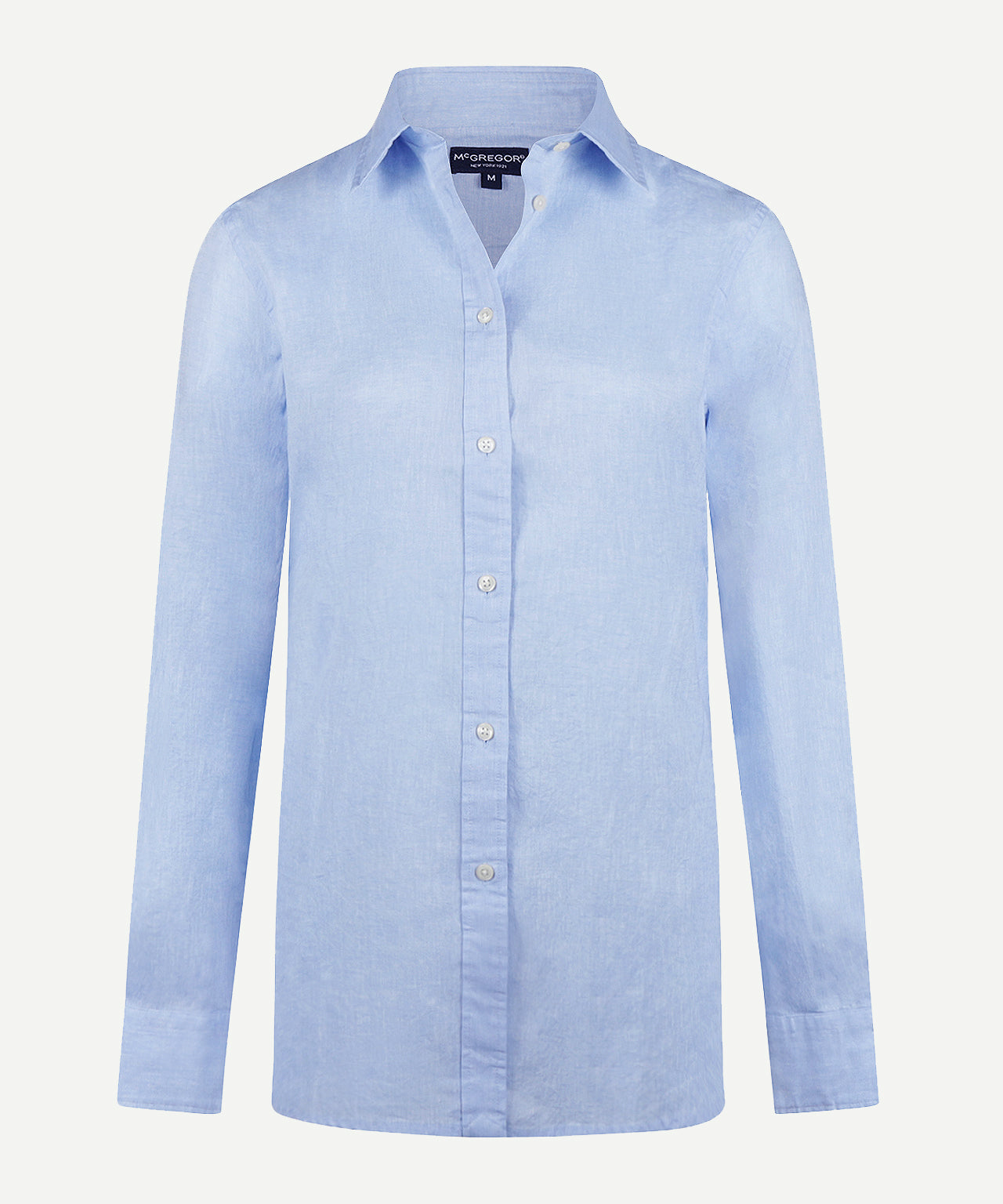 Deze katoen-linnen blouse is een ideale keuze voor warmere dagen. De mix van katoen en linnen zorgt voor een luchtig en ademend draaggevoel, terwijl de stof licht en comfortabel aanvoelt. Met een regular fit pasvorm, lange mouwen en een klassieke kraag heeft de blouse een tijdloze en verzorgde uitstraling. Het minimalistische design en het subtiele McGregor-logo maken dit een veelzijdig item dat eenvoudig te combineren is.
