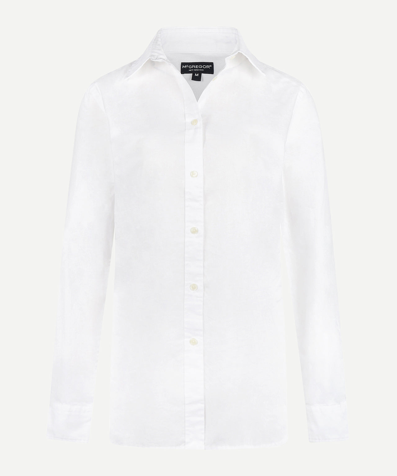 Deze katoen-linnen blouse is een ideale keuze voor warmere dagen. De mix van katoen en linnen zorgt voor een luchtig en ademend draaggevoel, terwijl de stof licht en comfortabel aanvoelt. Met een regular fit pasvorm, lange mouwen en een klassieke kraag heeft de blouse een tijdloze en verzorgde uitstraling. Het minimalistische design en het subtiele McGregor-logo maken dit een veelzijdig item dat eenvoudig te combineren is.