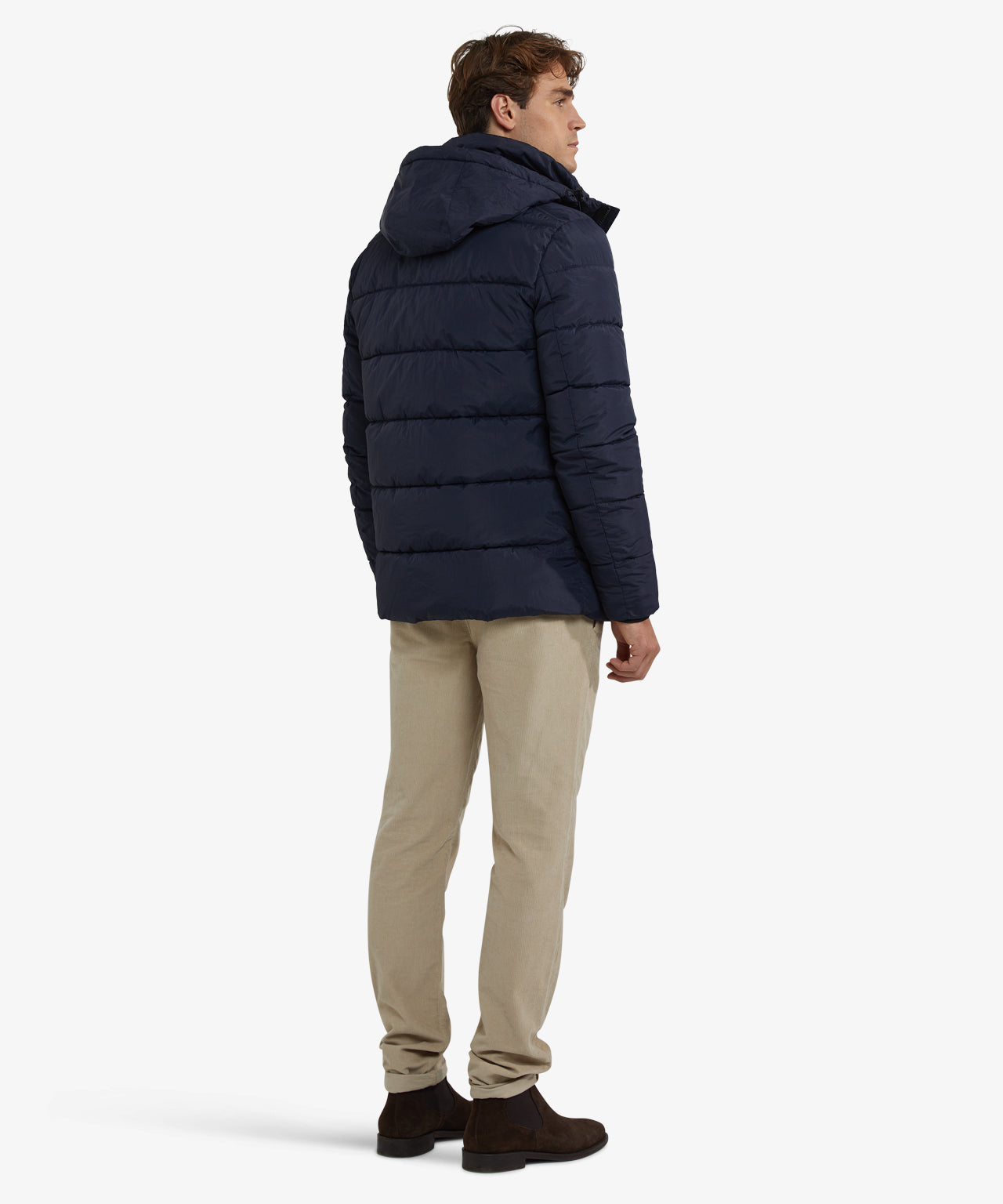 Een moderne interpretatie van de klassieke bomber. Dit model is voorzien van een ritssluiting, een borstzak met ritssluiting en een handige hanglus, gecombineerd met een capuchon voor extra functionaliteit. Gemaakt van 100% polyester in regular fit, wat zorgt voor comfort en een lichte bescherming tegen wind en weer. Het ontwerp biedt een sportieve uitstraling met praktische details, geschikt voor dagelijks gebruik.