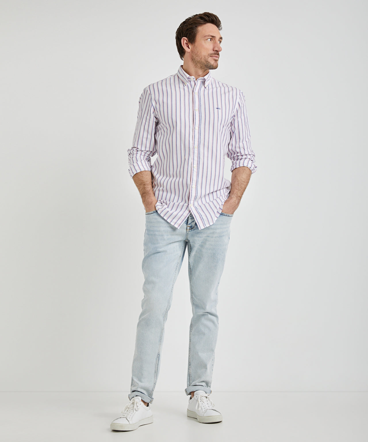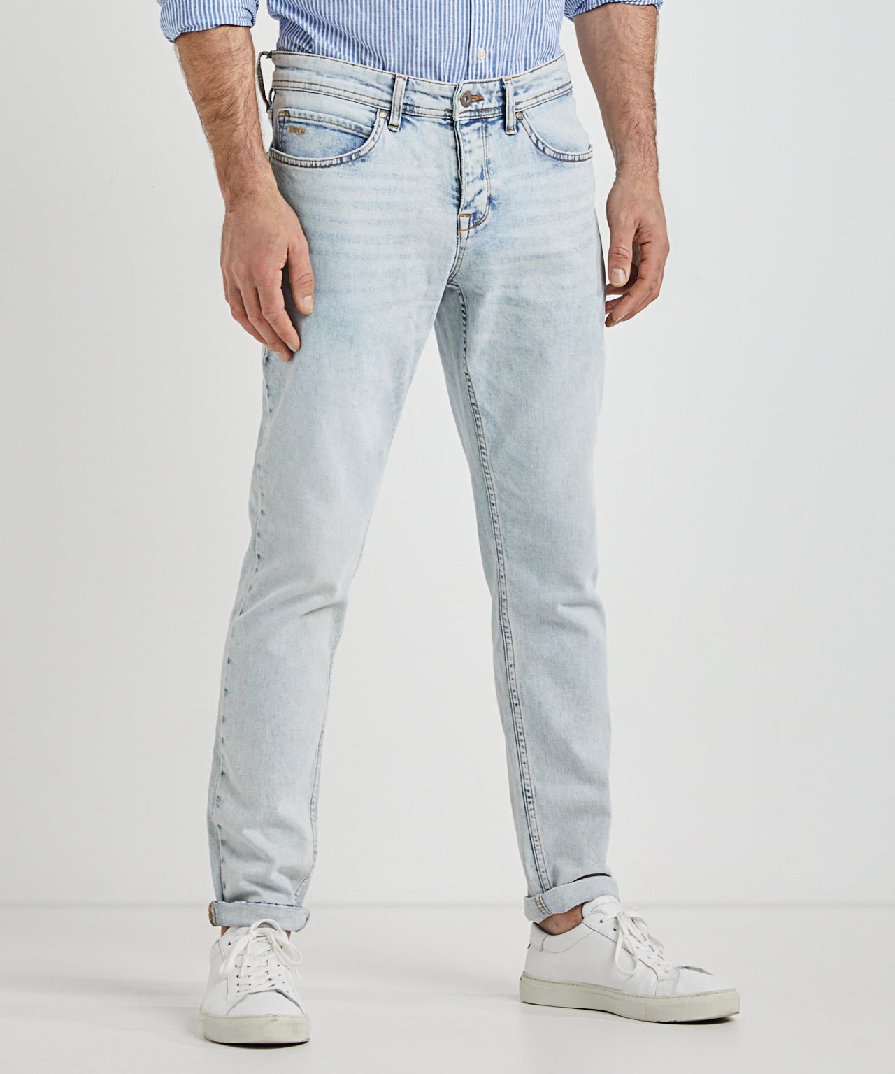 Deze jeans is een onmisbaar item. De super lichtblauwe denimstof en de slim fit pasvorm bieden een perfecte combinatie van comfort en stijl. Gemaakt van een katoenmix voor extra draagcomfort, beschikt de 5-pocket jeans over een knoopsluiting, gulp met knopen, een leren McG-patch op de achterkant, en een subtiel geborduurd McG-logo op het muntzakje. Een veelzijdige keuze met doordachte details voor een eigentijdse uitstraling.