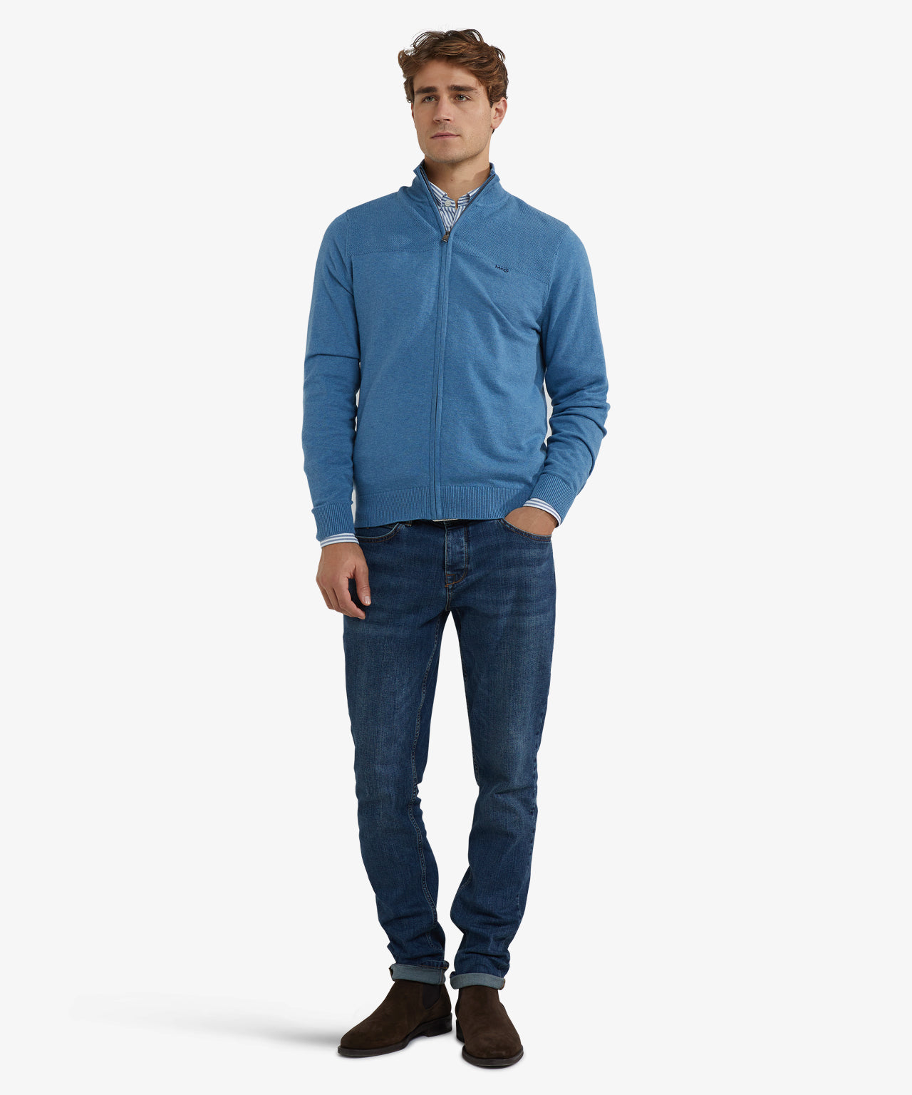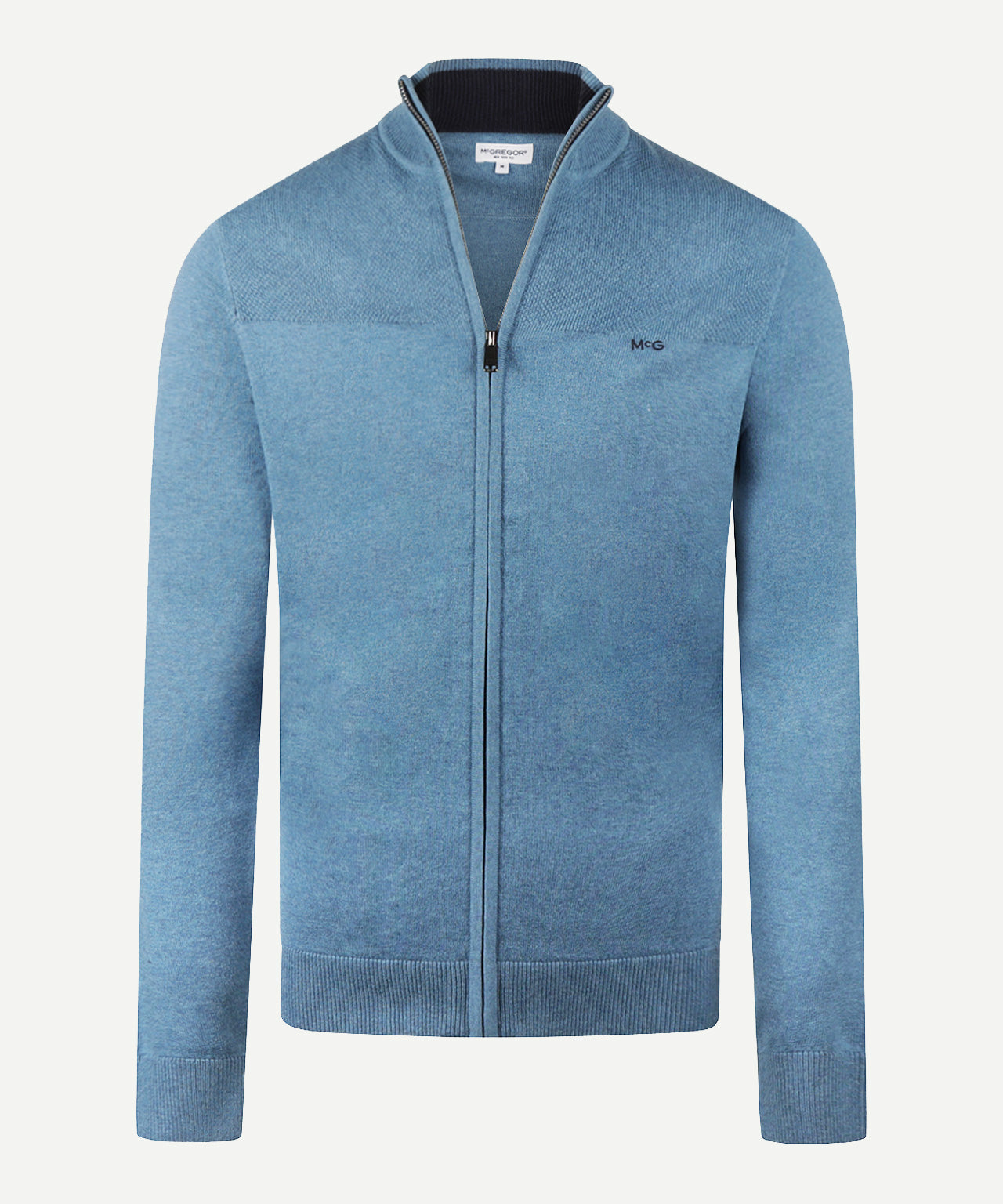 Dit ritsvest is gemaakt van een hoogwaardige mix van 70% katoen en 30% merinowol, voor een zachte, comfortabele en luxueuze draagervaring. Het vest heeft een regular fit, lange mouwen, een ribgebreide ronde hals en ribgebreide manchetten. De metalen ritssluiting en het subtiele McGregor-logo op de borst geven een verfijnde uitstraling. Een veelzijdig en stijlvol item voor zowel casual als nettere looks
