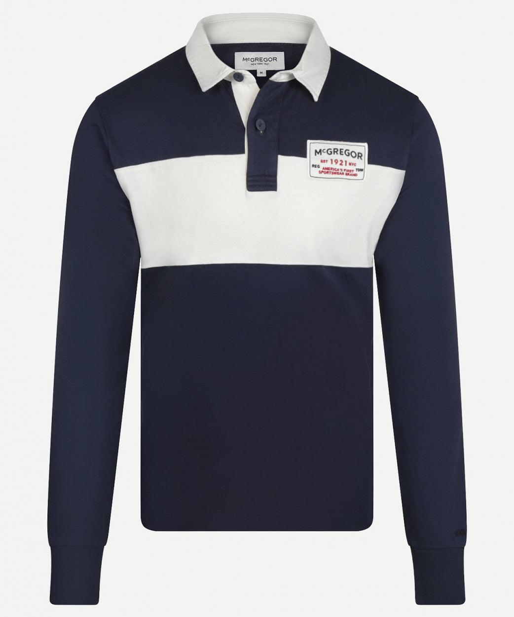 Deze rugby trui heeft lange mouwen en heeft op de borst een wit blok en een badge. De rugby trui heeft een klein McG-logo borduursel op de mouw en is voorzien van zijsplitten en een 2-knoops sluiting.