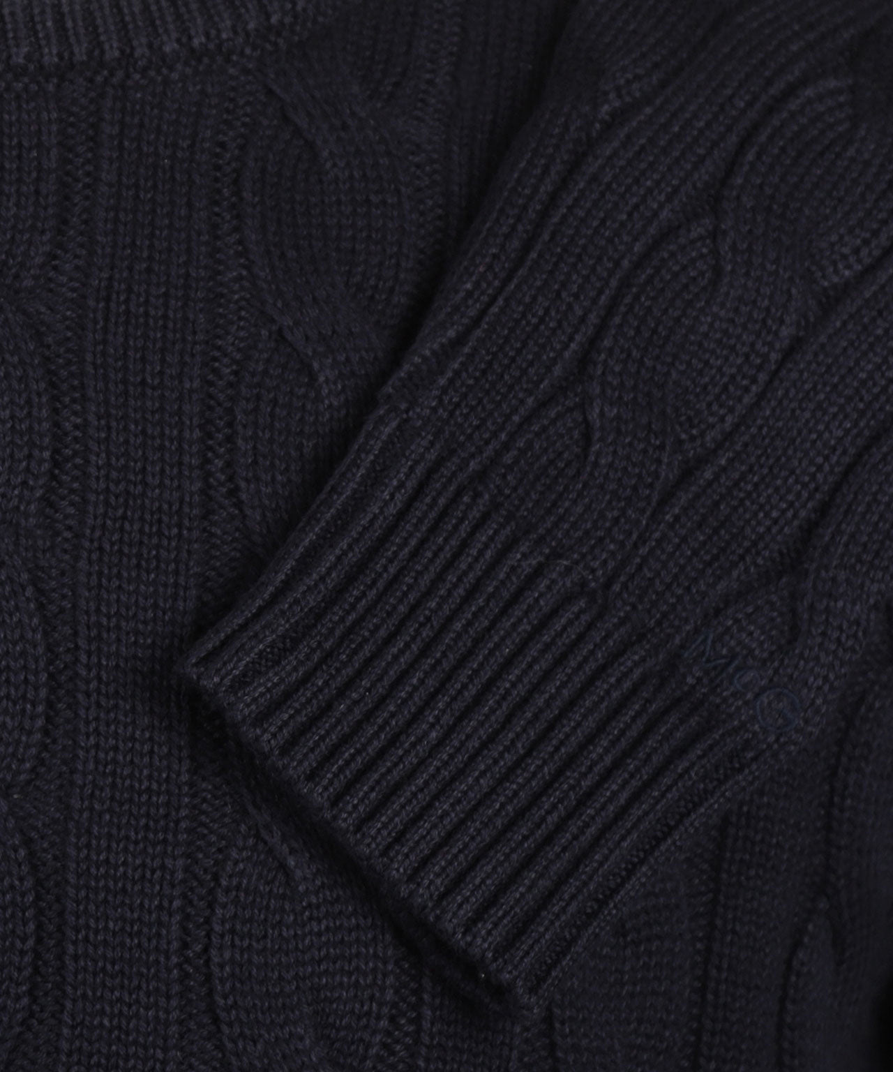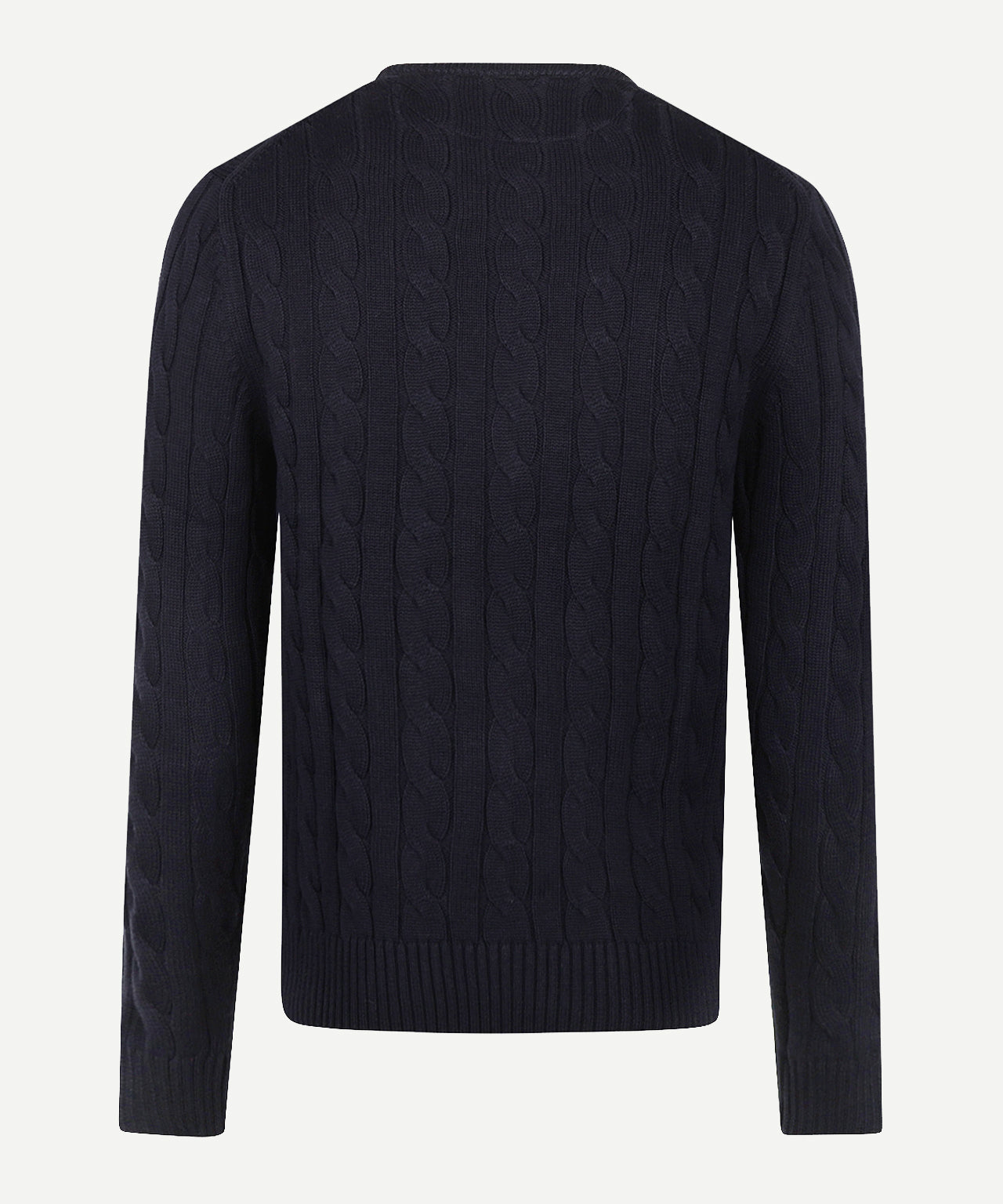 Deze rondehals trui is gemaakt van 100% katoen en biedt een comfortabele en ademende draagervaring. De trui heeft een regular fit, lange mouwen, een ribgebreide ronde hals en ribgebreide manchetten. Het klassieke kabelpatroon geeft de trui een tijdloze en stijlvolle uitstraling.