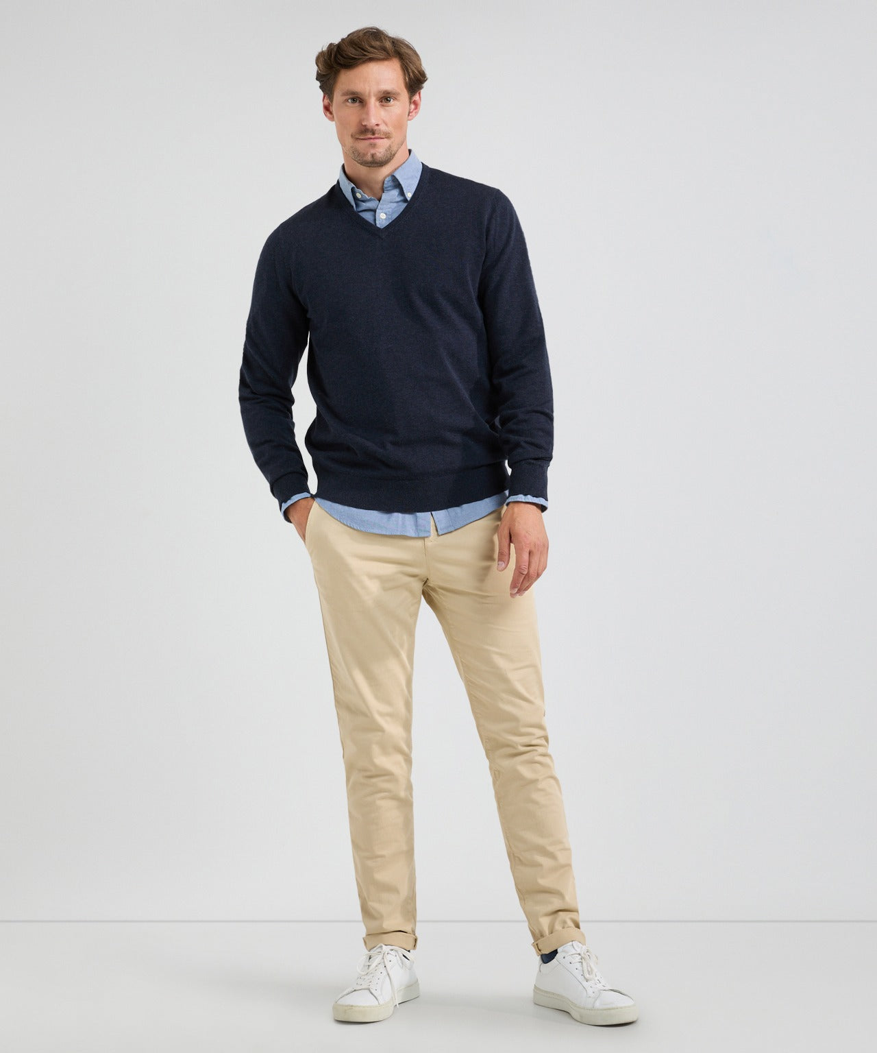 Deze trui is gemaakt van een hoogwaardige mix van katoen en merinowol, voor een zachte en comfortabele draagervaring. Het item heeft lange mouwen, een ribgebreide V-hals en ribgebreide manchetten. Op de borst bevindt zich een subtiel McGregor-logo. Een tijdloze en veelzijdige trui, geschikt voor zowel casual als smart-casual looks.