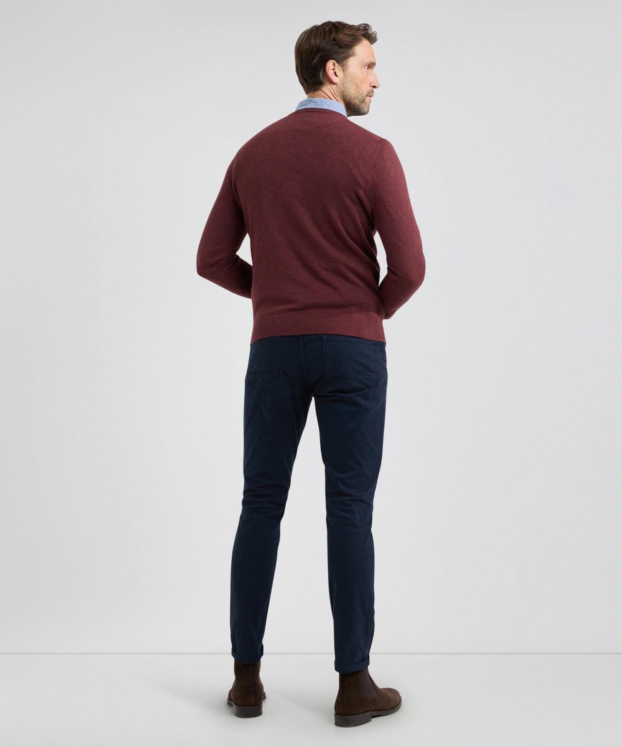 Deze stijlvolle regular fit V-hals trui is vervaardigd uit een luxe mix van hoogwaardig katoen en zachte merinowol. Deze trui biedt niet alleen comfort, maar ook een verfijnde stijl, versterkt door het subtiele monochrome McG-logo dat met zorg op de borst is geborduurd. De binnenzijde van de hals biedt een verrassend speels contrast, terwijl de kraag en manchetten zijn voorzien van een stijlvolle ribstructuur die de trui een tijdloze uitstraling geeft. Perfect voor elke gelegenheid.