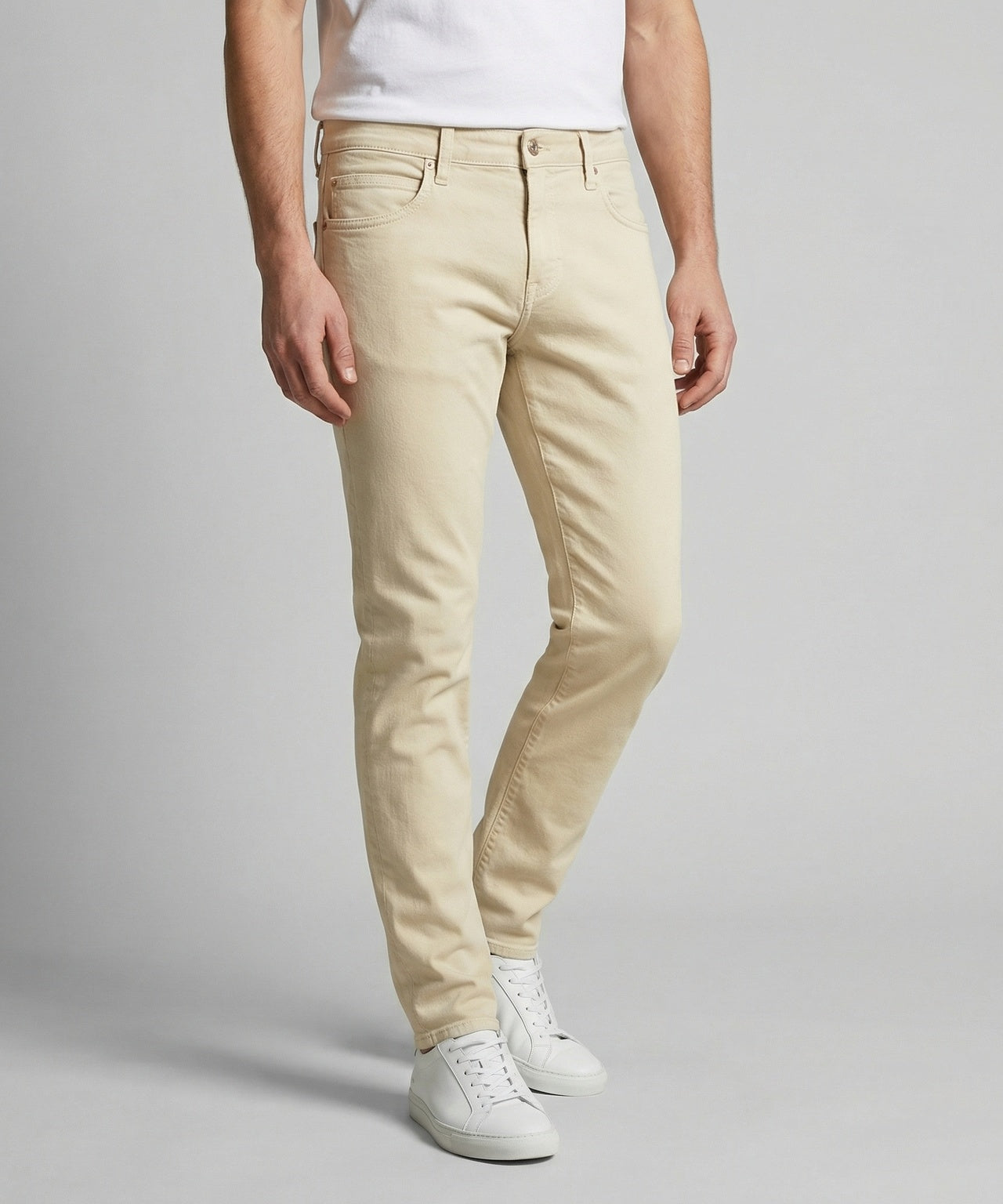 These slim-fit trousers are crafted from a premium cotton-elastane blend for a comfortable fit. Garment-dyed, they feature two side pockets, two back pockets, and a small coin pocket. The button closure and zip fly ensure practicality. The coin pocket features a subtle embroidered McGregor logo. Versatile and stylish trousers, suitable for both casual and smart-casual outfits.