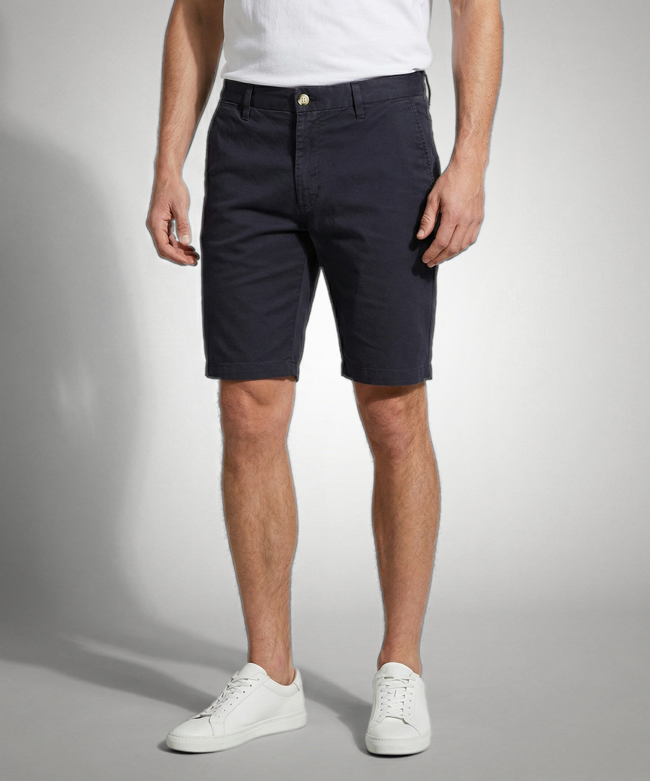 These classic shorts are made from a 97% cotton and 3% elastane blend and have a comfortable regular fit with a light stretch. The firmer cotton quality gives the shorts a classic chino look. The shorts feature side slit pockets and back pockets, with a button and zip closure at the front.