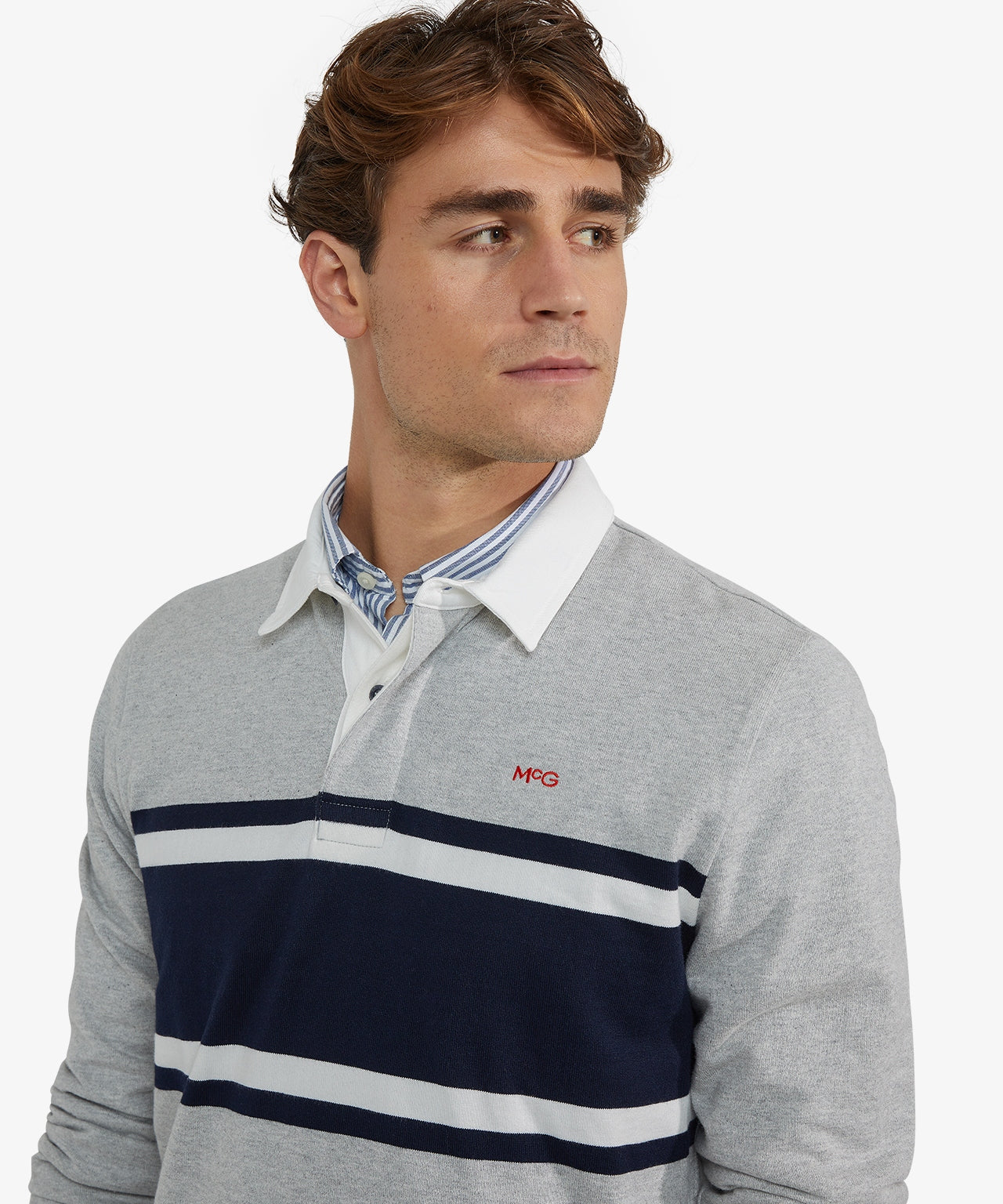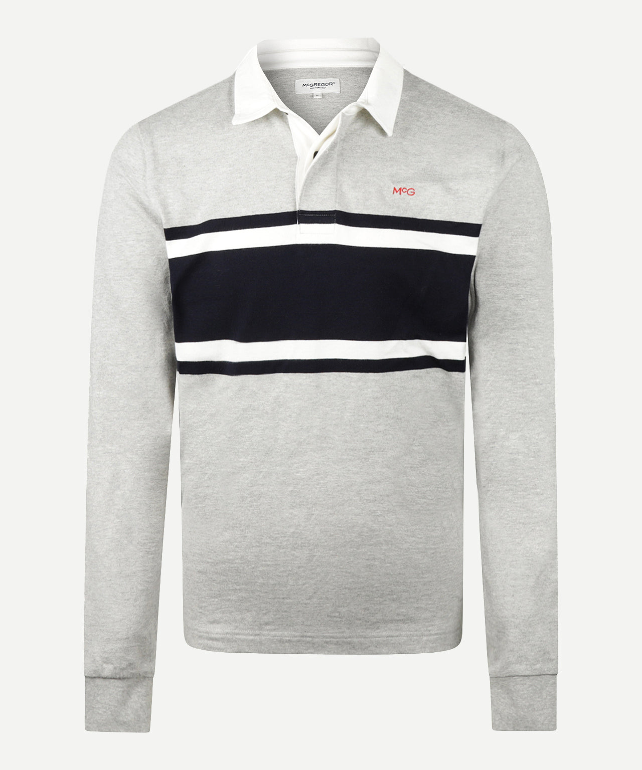The Colourblock Rugby Shirt combines rugby's sporting heritage with a modern colourblock design. Made from durable cotton jersey for optimal comfort, it features a classic rugby-style white pointed collar and signature rubber buttons at the neck. It features a regular fit, ribbed cuffs and a straight hem with a split. Finished with the subtly embroidered McG logo on the left sleeve.