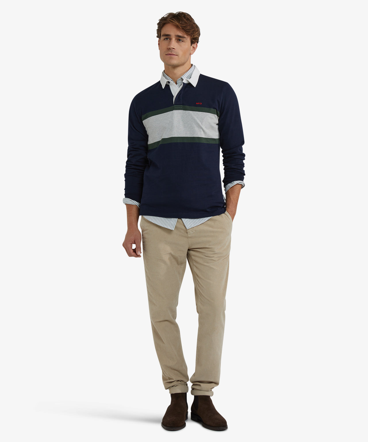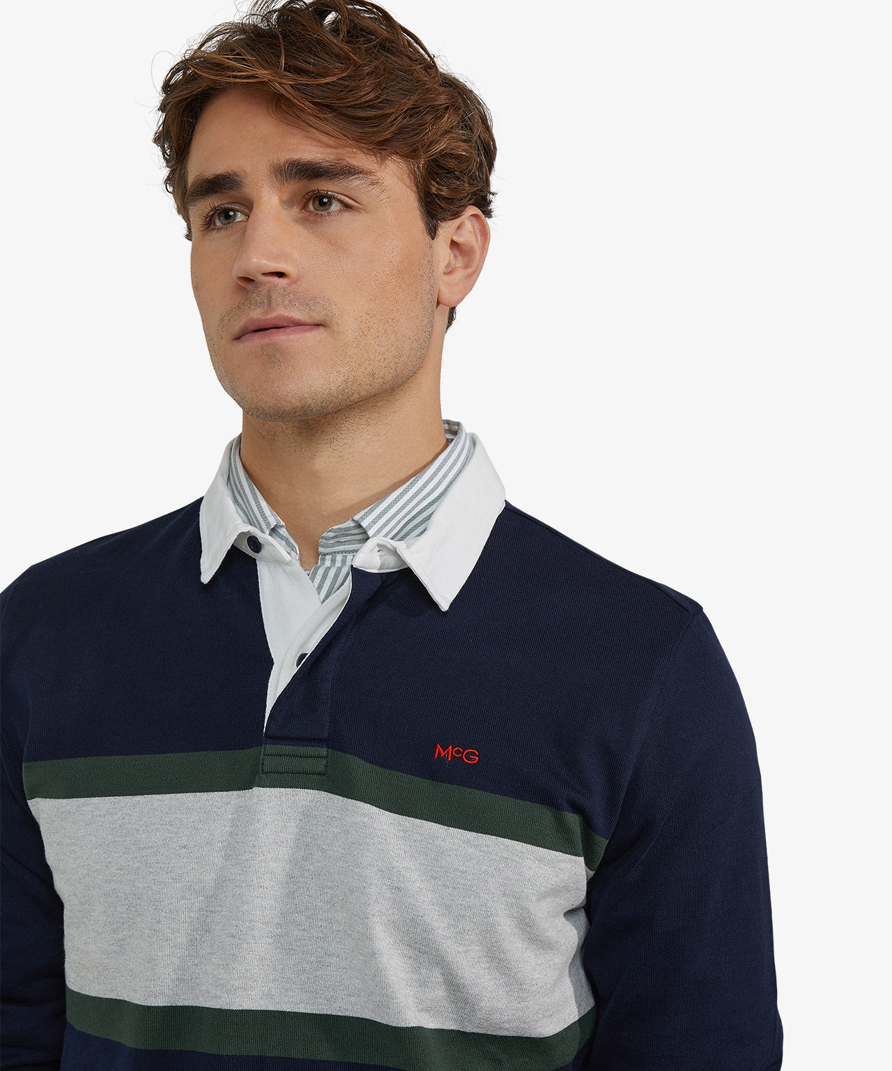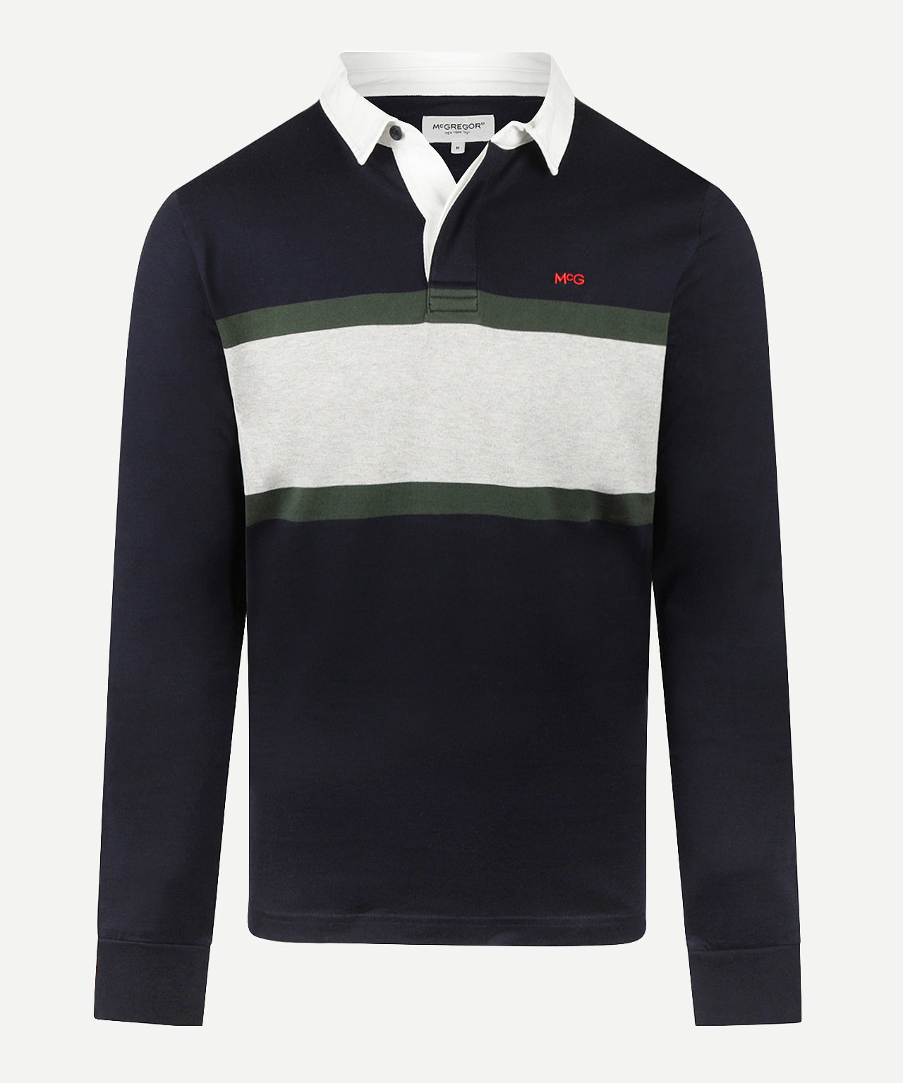 The Colourblock Rugby Shirt combines rugby's sporting heritage with a modern colourblock design. Made from durable cotton jersey for optimal comfort, it features a classic rugby-style white pointed collar and signature rubber buttons at the neck. It features a regular fit, ribbed cuffs and a straight hem with a split. Finished with the subtly embroidered McG logo on the left sleeve.
