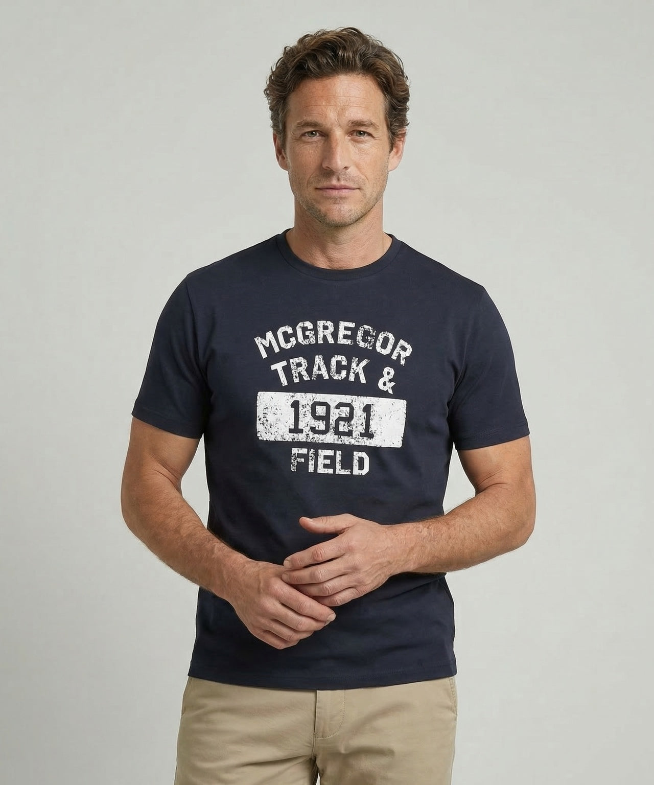 This graphic T-shirt is made of 100% soft cotton and has a comfortable regular fit. The striking graphic print on the chest gives the T-shirt a sporty and distinctive look. The short sleeves and crew neck ensure a comfortable fit and optimal wearing comfort, ideal for a casual and modern look.