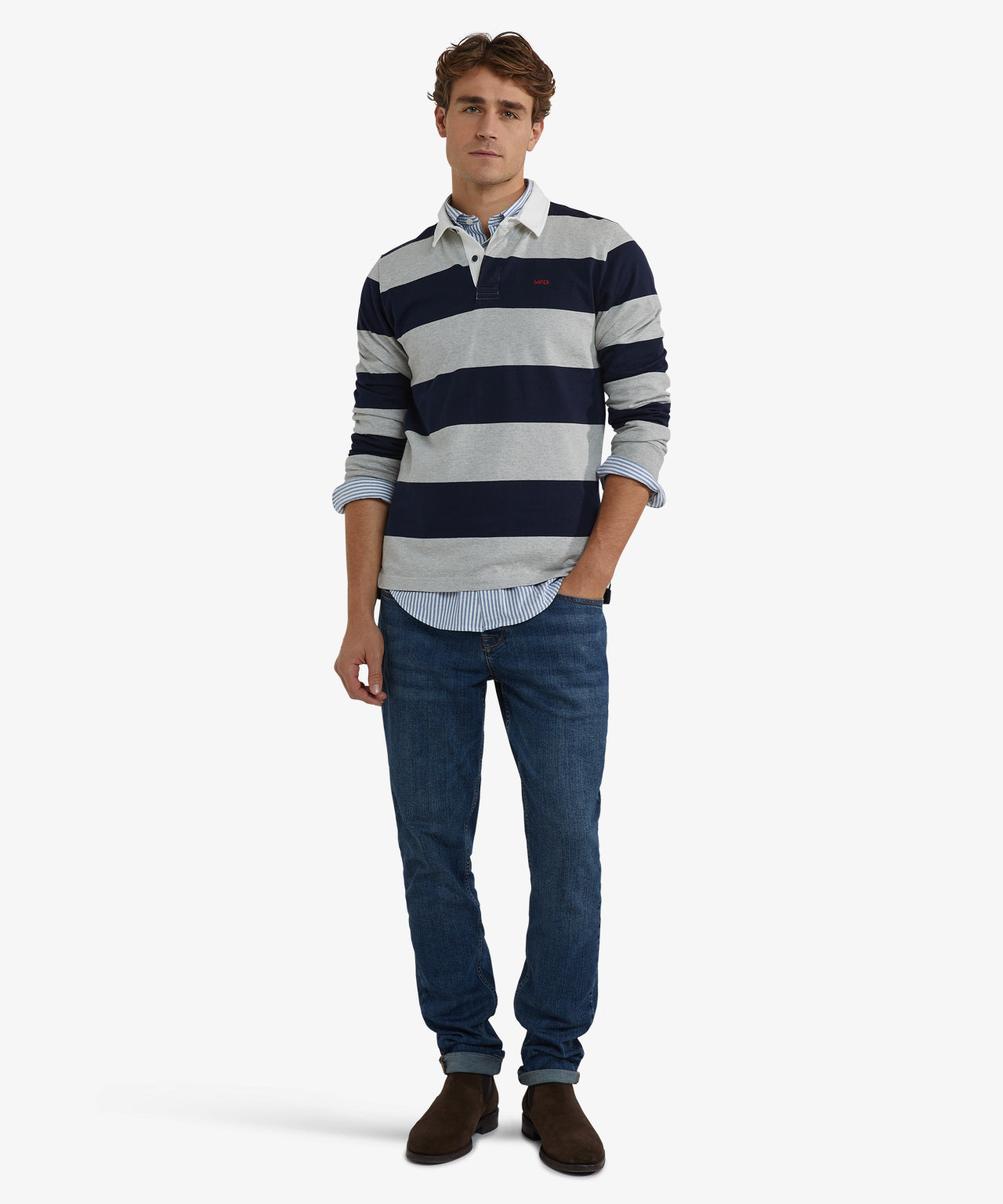 Inspired by the original rugby shirt, but with a modern twist: the Heritage Striped Rugby Shirt is made of durable cotton jersey for optimal comfort. The striped design combined with the white pointed collar in classic rugby style gives the shirt a sporty yet timeless character. It features a regular fit, rubber buttons, ribbed cuffs and a straight hem with a split. Finished with the subtly embroidered McG logo on the left sleeve.