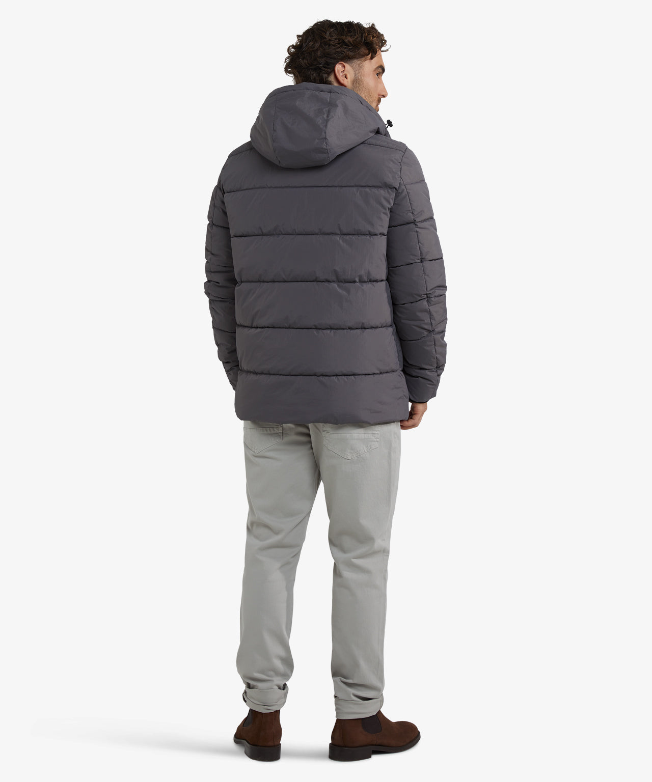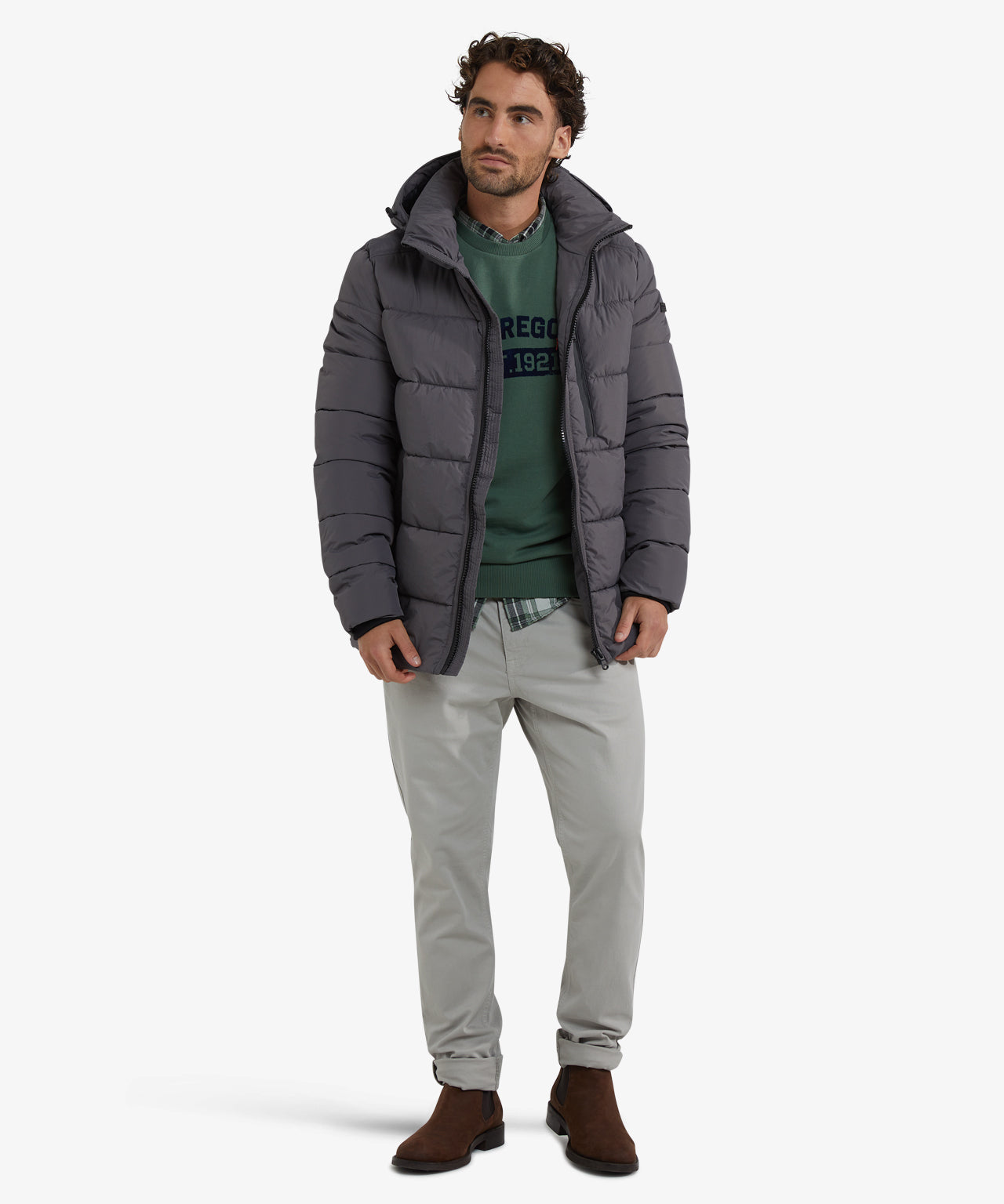 A modern interpretation of the classic bomber jacket. This style features a zip closure, a zipped chest pocket, and a handy hanger loop, combined with a hood for added functionality. Made of 100% polyester in a regular fit, it provides comfort and lightweight protection from the elements. The design offers a sporty look with practical details, suitable for everyday wear.
