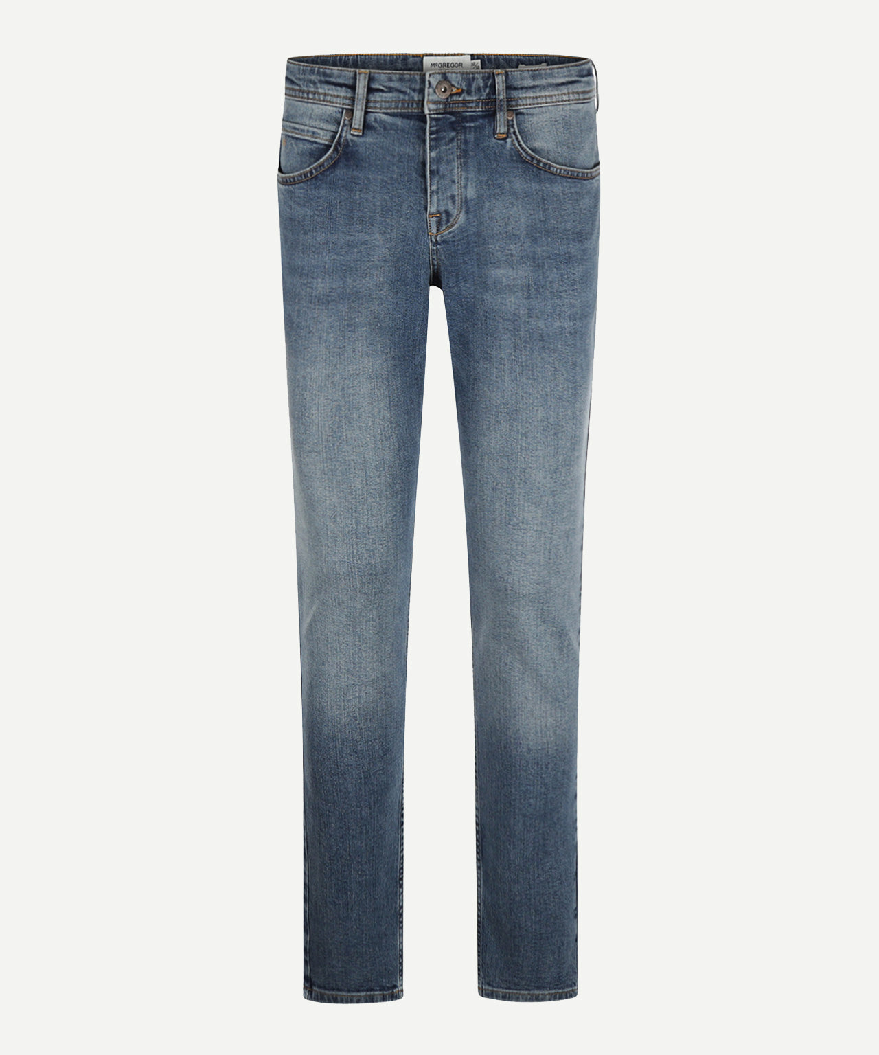 These slim-fit denim jeans are crafted from a premium cotton-elastane blend for a comfortable fit with a touch of stretch. They feature two side pockets, two back pockets, and a small coin pocket. The button closure and zip fly make them practical. The coin pocket features a subtle embroidered McGregor logo. A versatile and timeless denim, suitable for both casual and smart-casual outfits.