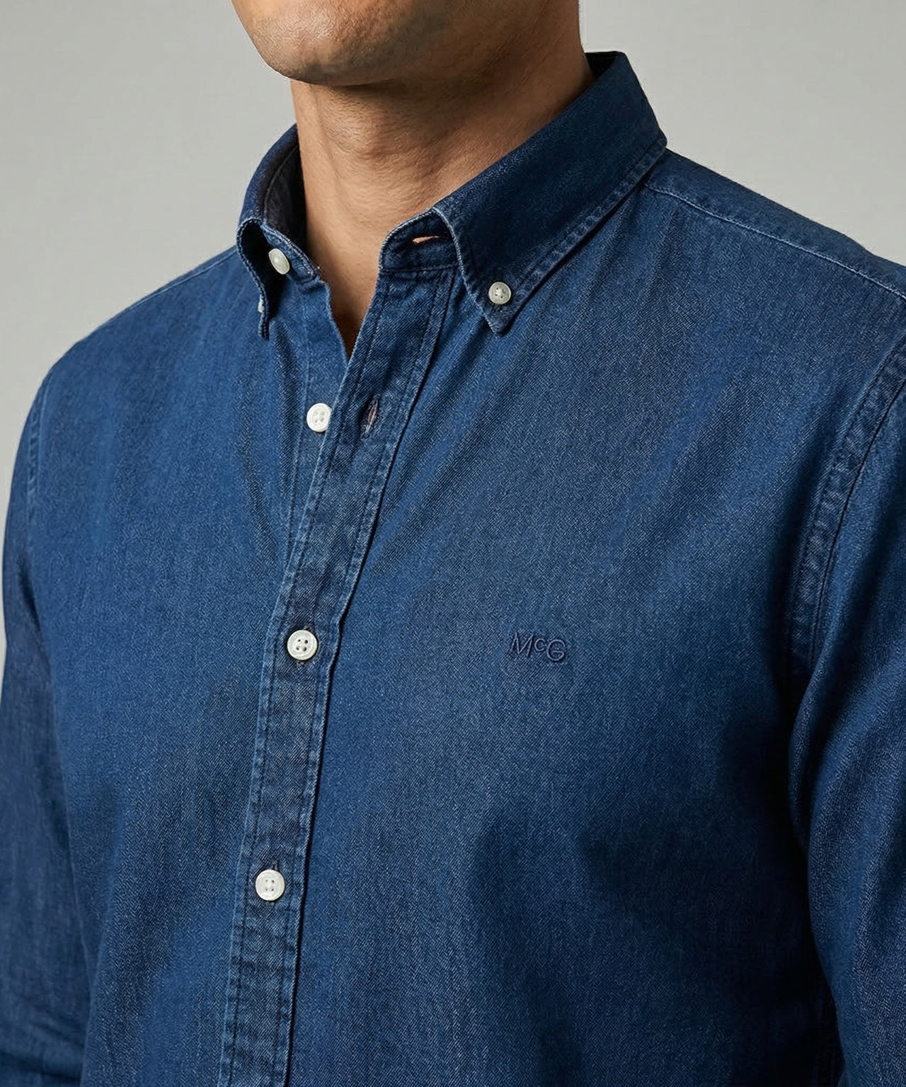 This shirt is made of 100% premium cotton and has a regular fit for comfortable everyday wear. It features long sleeves, a button-down collar, and a subtle McGregor logo on the chest. The chambray weave gives it a light denim look, giving it a timeless and versatile look. Suitable for both casual and smart-casual outfits.