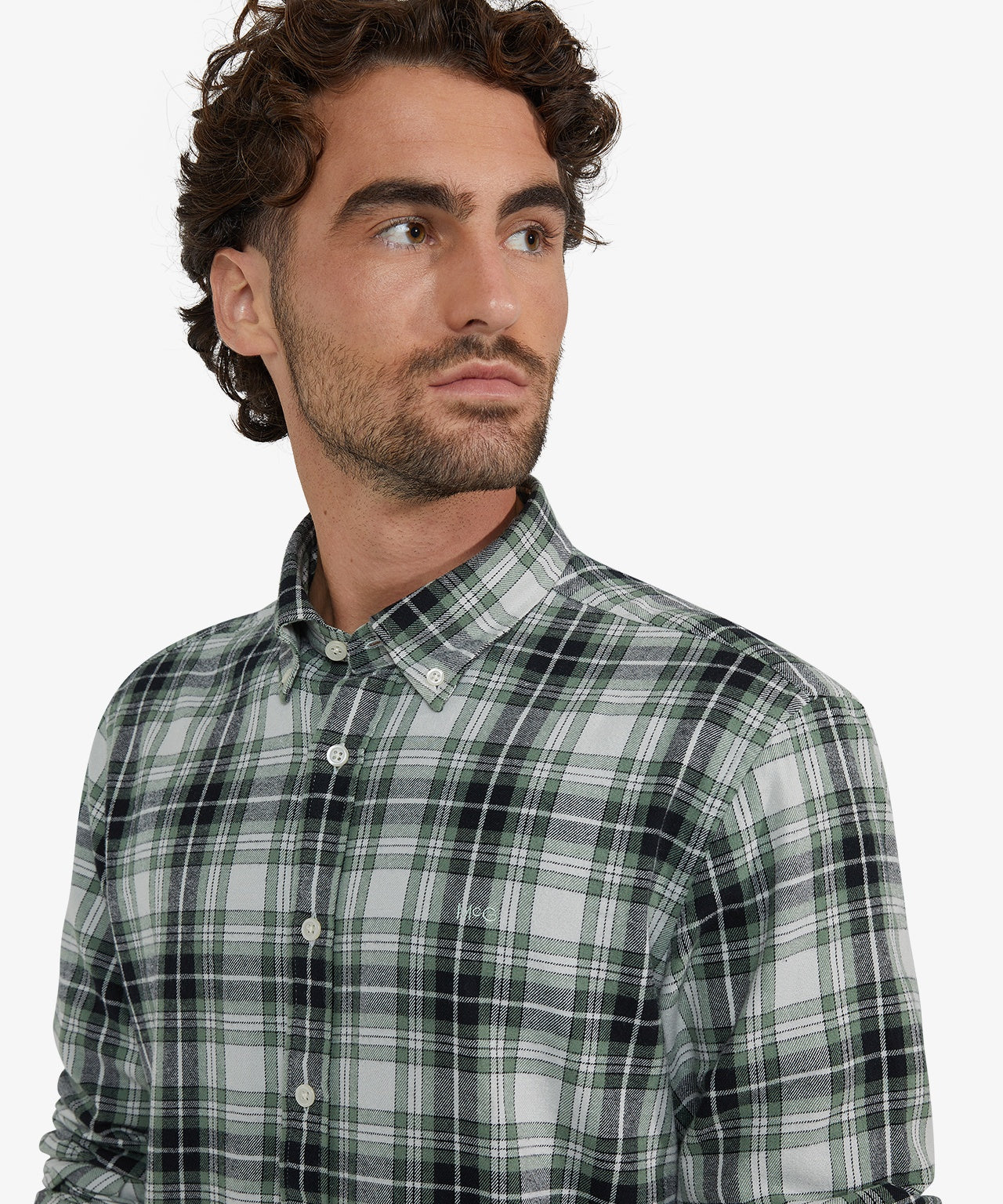 This shirt is made of 100% premium cotton and has a regular fit for comfortable everyday wear. It features long sleeves, a button-down collar, and a subtle McGregor logo on the chest. The classic white check pattern gives it a timeless and versatile look. The soft flannel adds warmth and comfort.