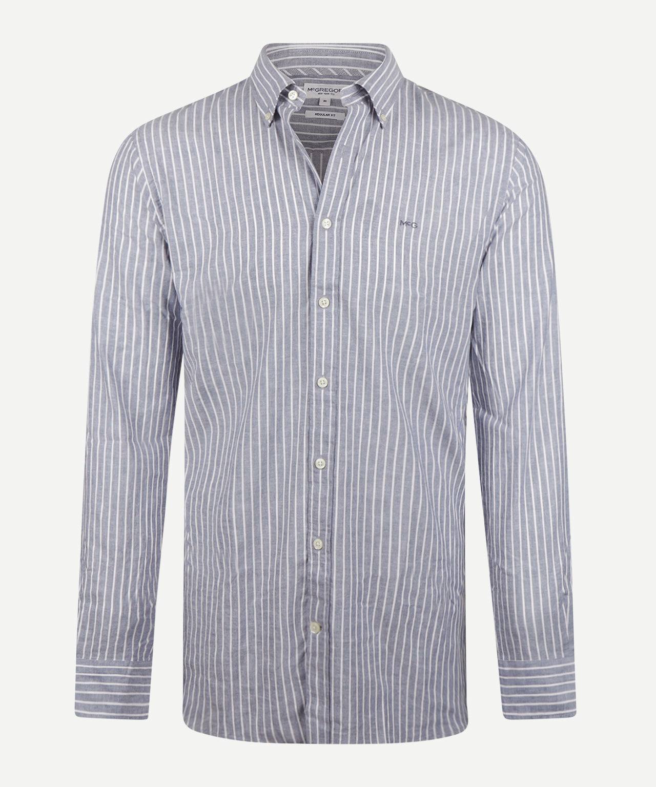 This cotton-linen striped shirt is the perfect choice for warmer days. The blend of cotton and linen offers an ideal combination of breathability, comfort, and a timeless look. With a regular fit, long sleeves, and a button-down collar, the shirt exudes effortless style. The subtle McGregor logo on the chest and the fine stripe pattern give it a fresh and polished appearance.