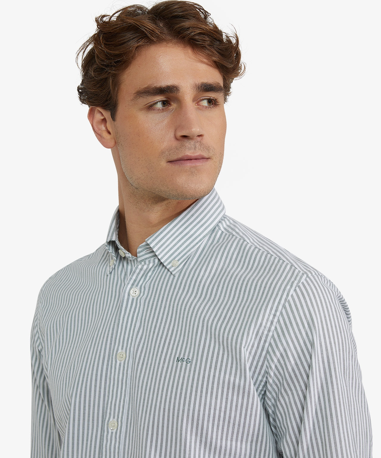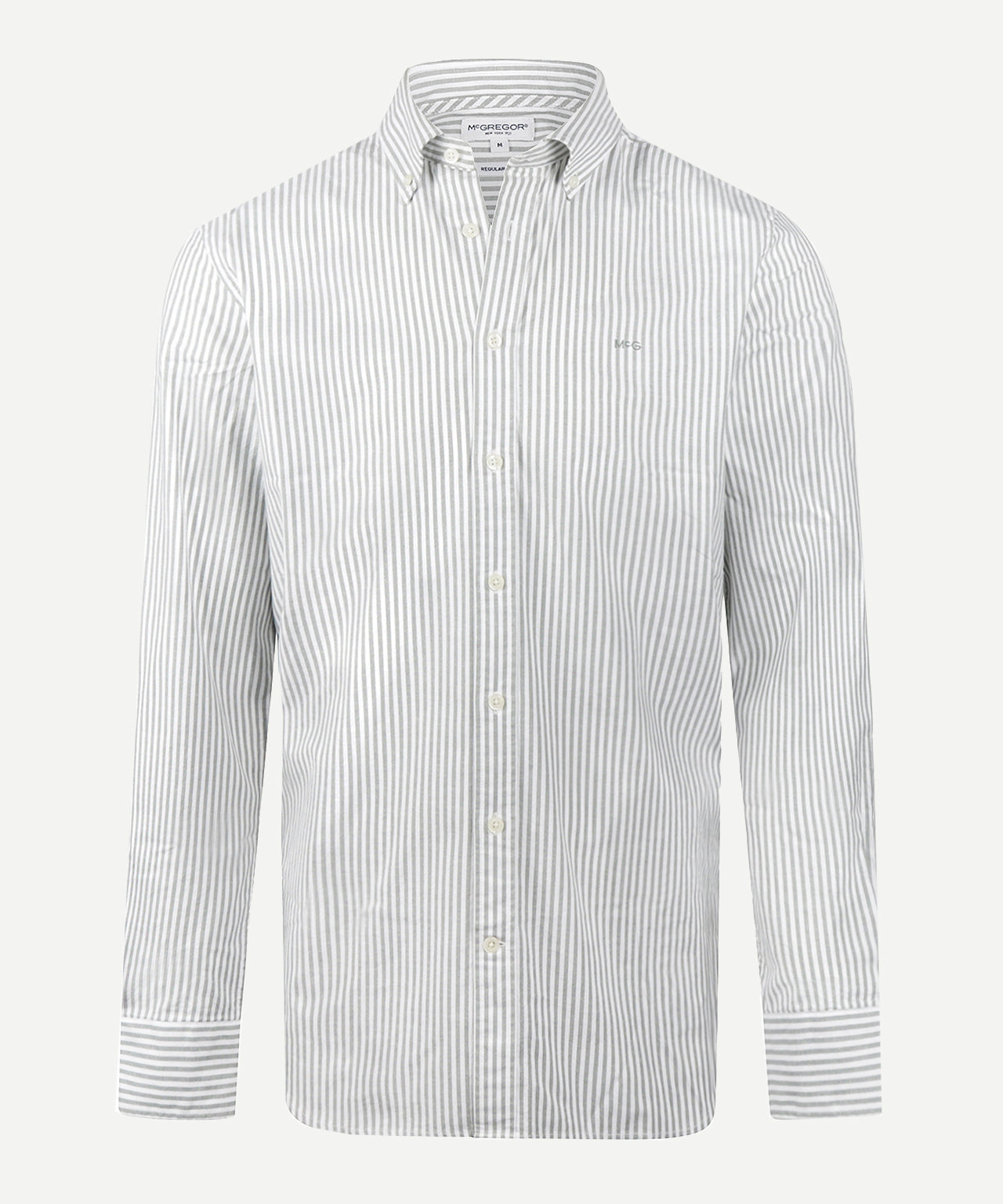 This shirt is made with a premium cotton-elastane blend for a comfortable, regular fit and a touch of stretch. It features long sleeves, a button-down collar, and a subtle McGregor logo on the chest. The wide stripe design gives it a timeless and versatile look. Suitable for both casual and smart-casual outfits.