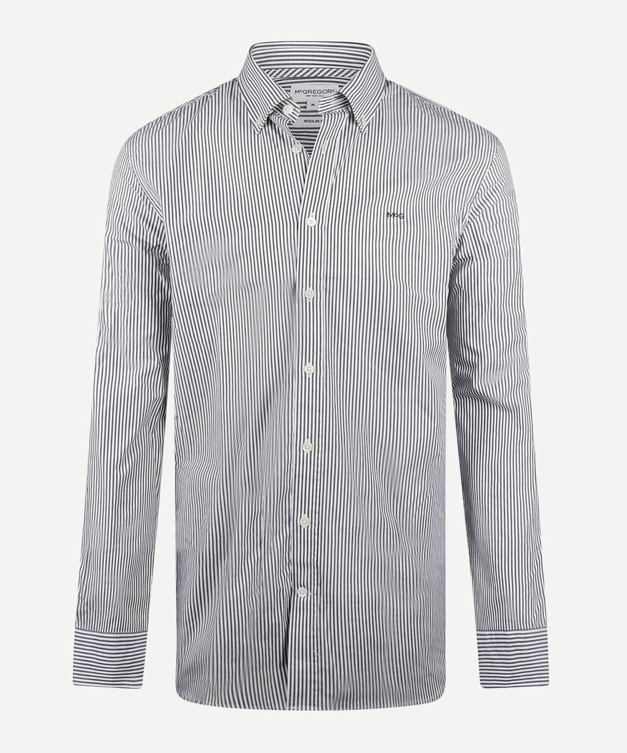 Crafted from 100% premium cotton, this shirt has a regular fit for comfortable everyday wear. It features long sleeves, a button-down collar, and a subtle McGregor logo on the chest. The poplin weave is fine and dense, giving it a smooth feel with a subtle sheen, while the peached finish provides a soft, comfortable touch. The subtle stripe pattern gives the shirt a timeless and versatile look.
