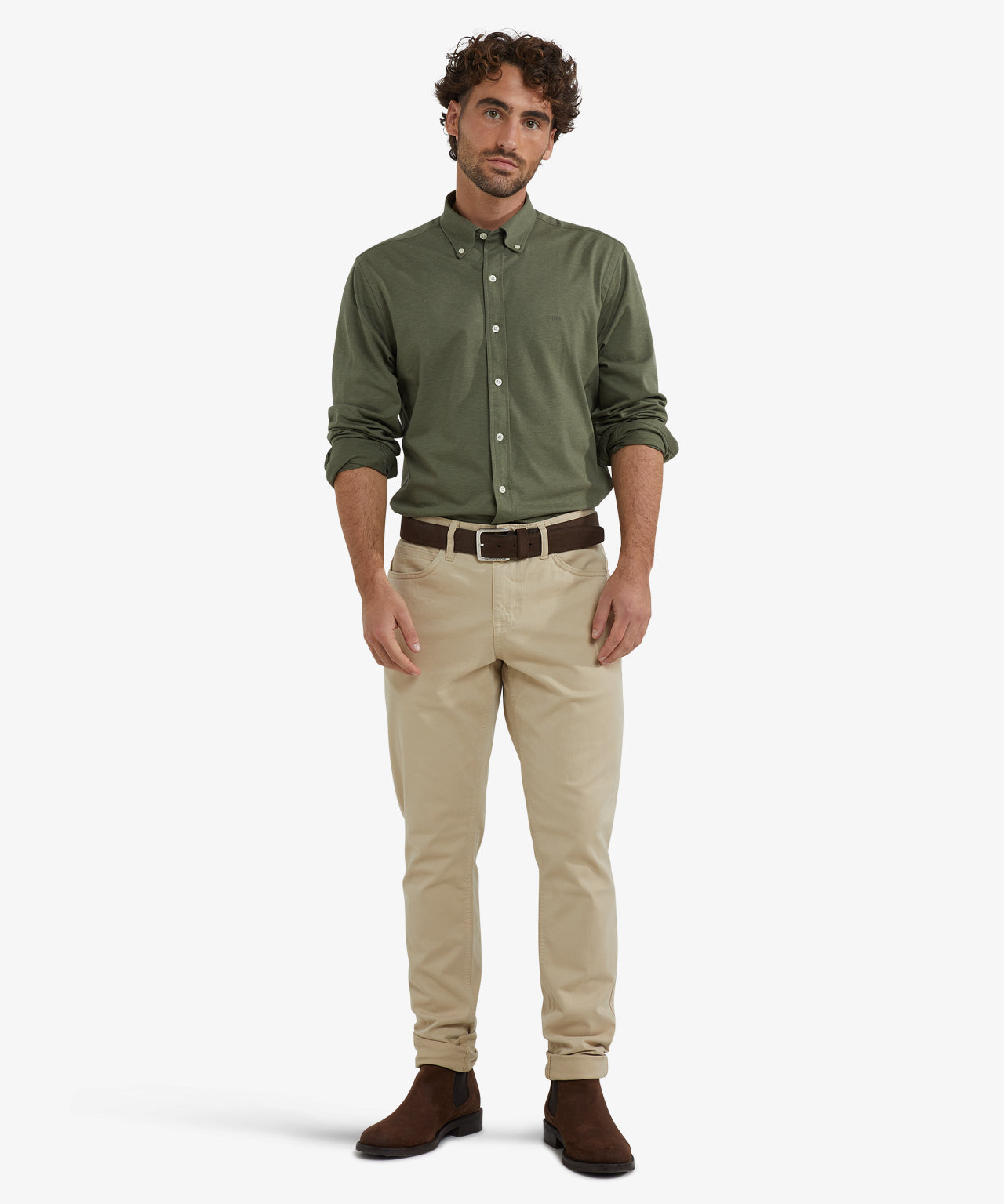 This shirt is made from a premium blend of 95% cotton and 5% elastane for a comfortable fit with a touch of stretch. It has a regular fit, long sleeves, a button-down collar, and a subtle McGregor logo on the chest. A versatile and stylish piece, suitable for both casual and smart-casual outfits.