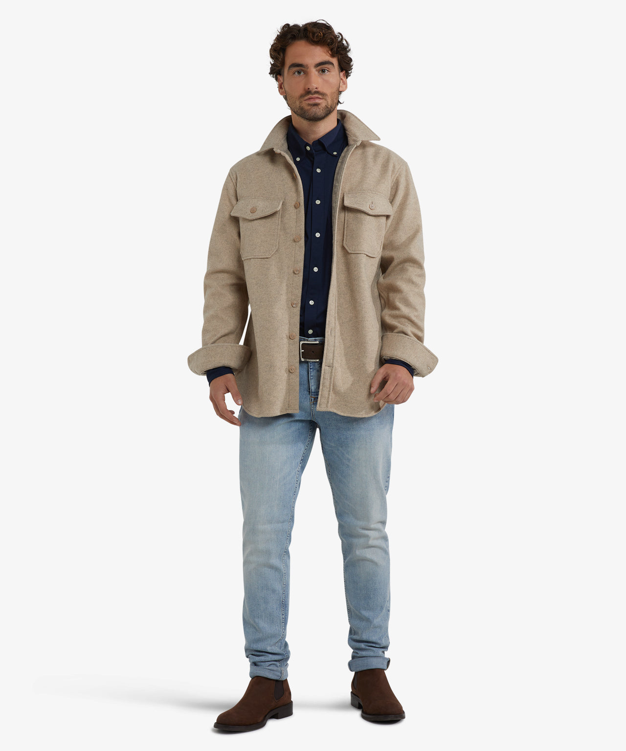 This overshirt is made of 100% premium cotton and has a regular fit for comfortable everyday wear. It features long sleeves, a shirt collar, and two button-down chest pockets, one of which has a flap with a subtle McGregor logo. The wool-look design gives it a classic, timeless look. A versatile and stylish piece that can be worn alone or layered.
