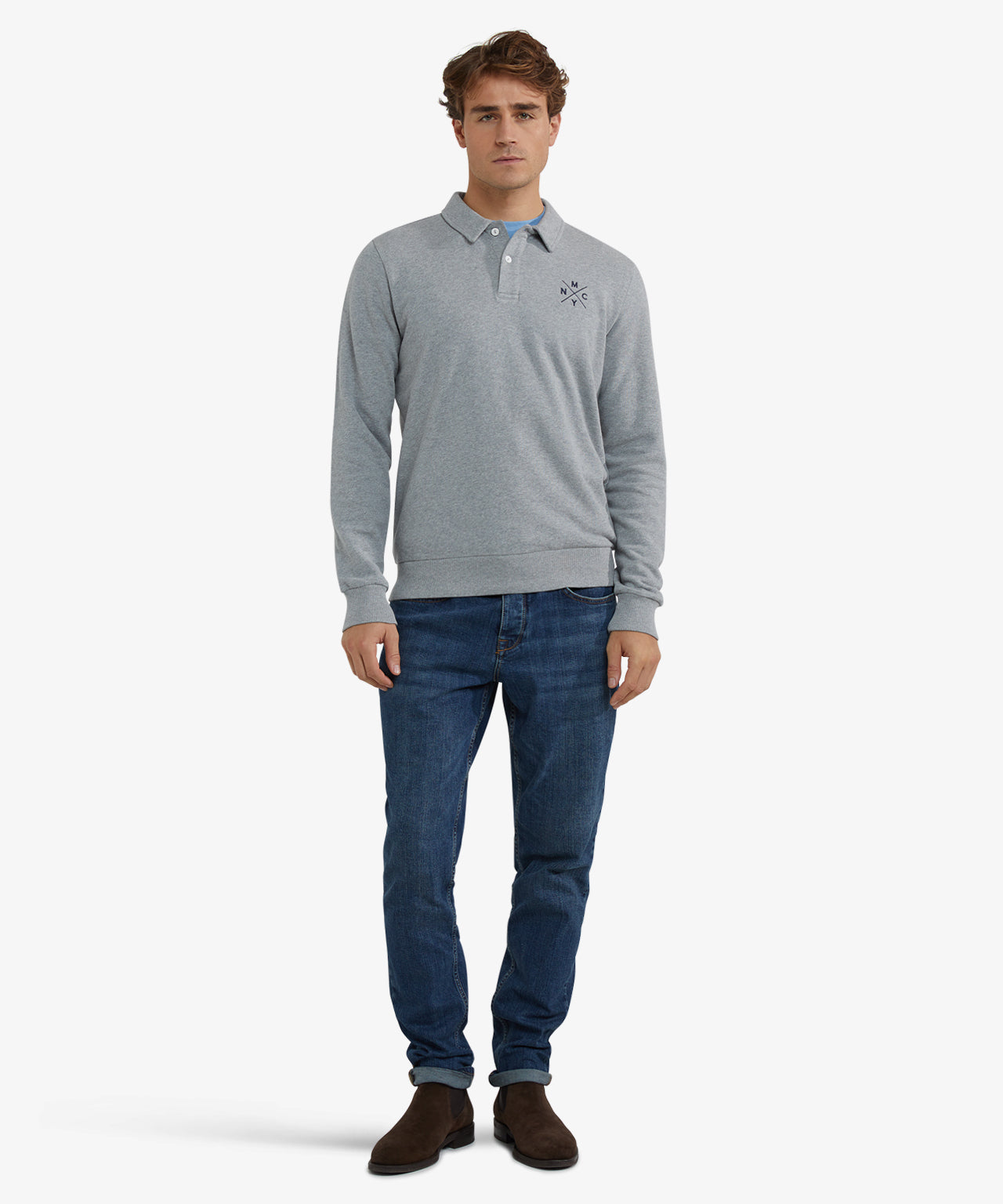 This sweatshirt is made of 100% premium cotton and has a regular fit for comfortable everyday wear. It features long sleeves, a two-button polo collar, and a subtle design on the chest. A versatile and stylish piece, suitable for both casual and smart-casual looks.