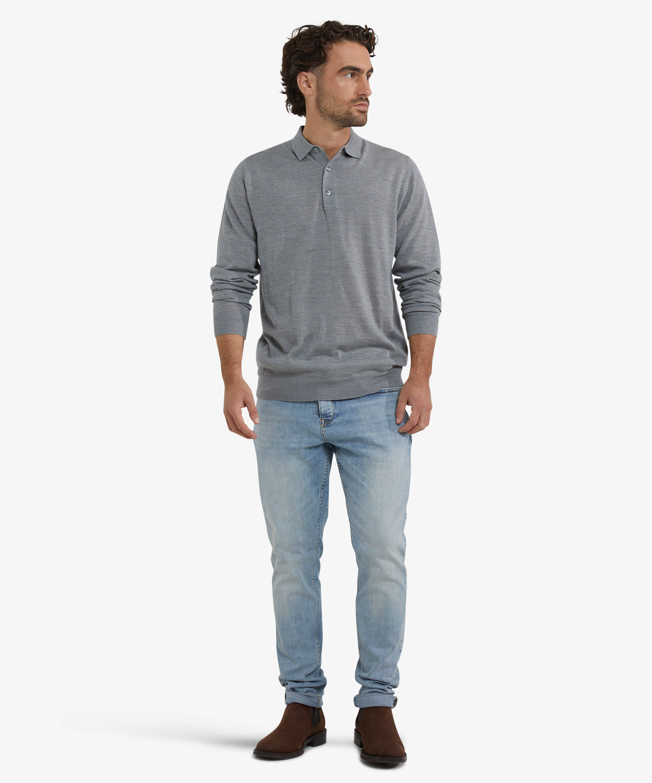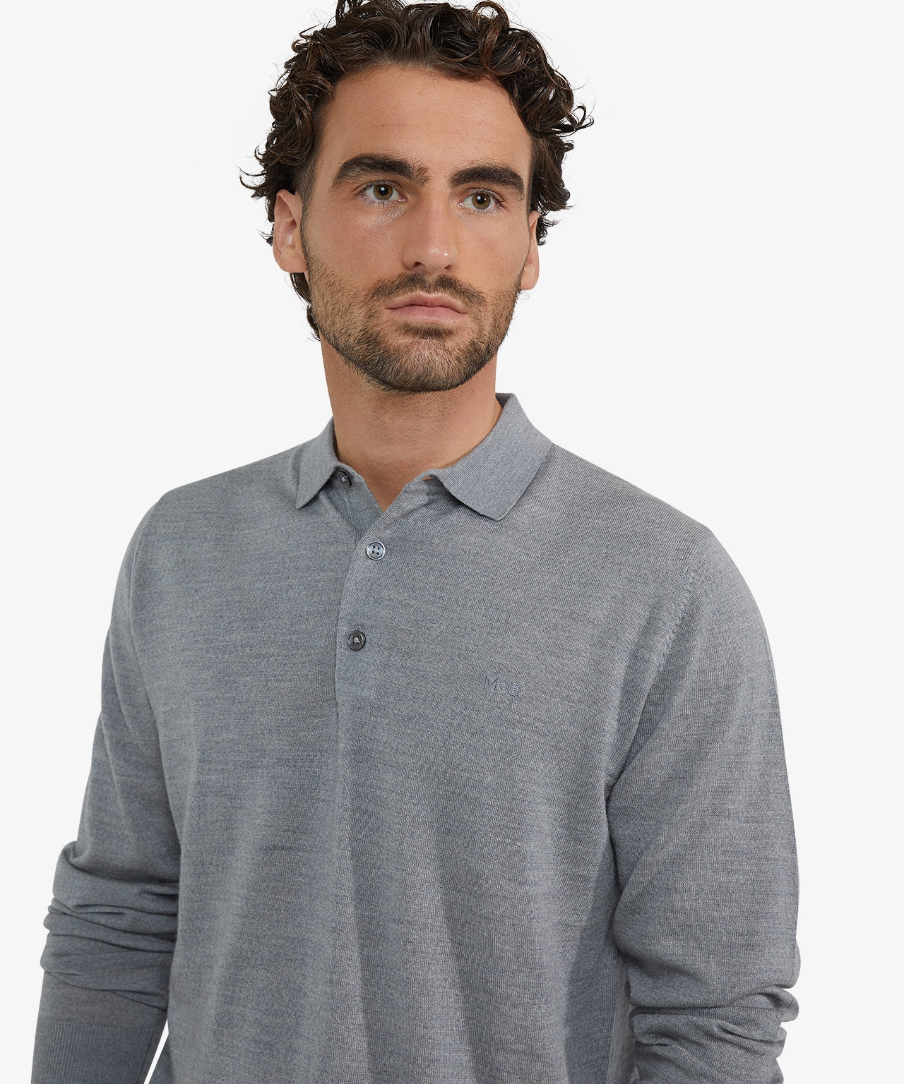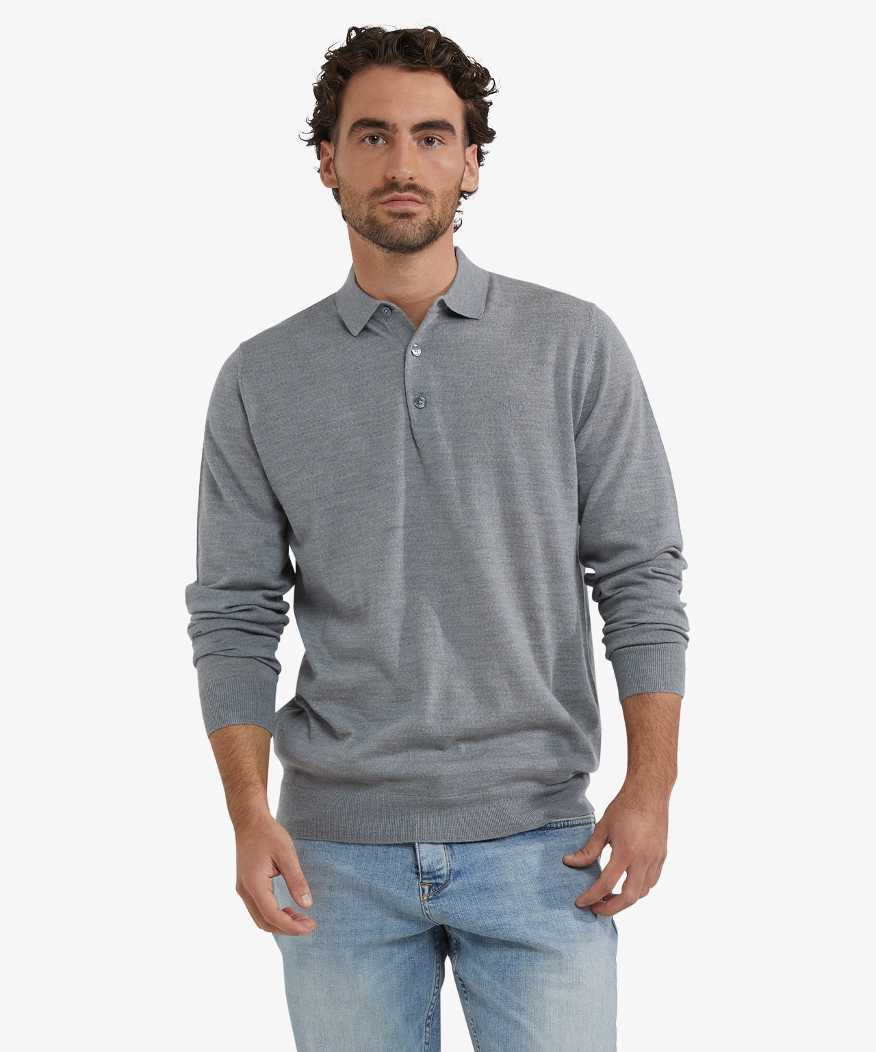 This polo sweater is made of 100% extra-fine merino wool of premium quality for a soft, lightweight, and comfortable feel. It has a regular fit, long sleeves, a ribbed polo collar, and ribbed cuffs with a three-button placket. A versatile and stylish piece that can be worn both casually and formally.