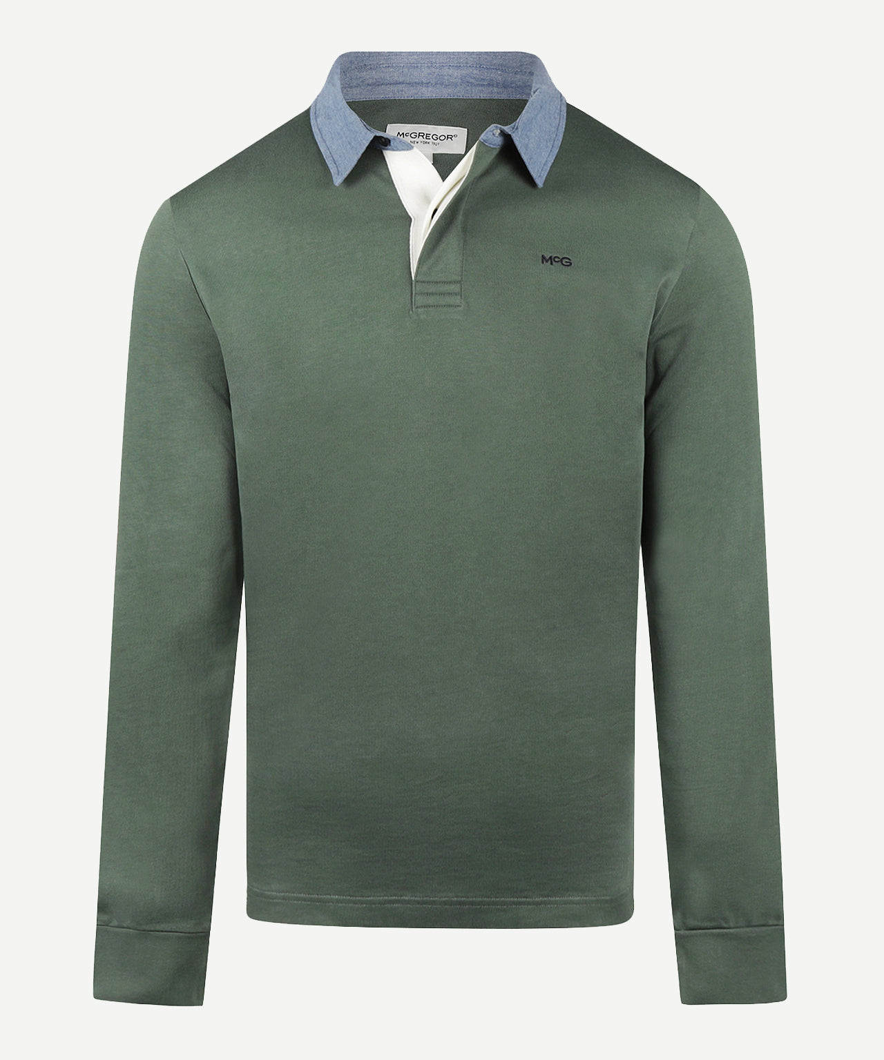 A timeless essential with sporting roots, this Classic Cotton Rugby Shirt is crafted from durable cotton jersey and designed for everyday comfort. The regular fit, white pointed collar in traditional rugby style, and signature rubber buttons give it an authentic look. Finished with ribbed cuffs, a straight hem with a split, and the subtly embroidered McG logo on the left sleeve.