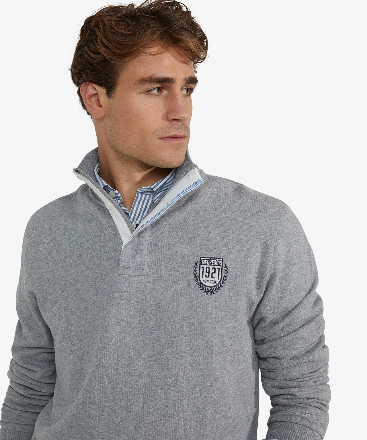 This sweatshirt is made of 100% premium cotton and has a regular fit for comfortable everyday wear. It features long sleeves, a ribbed neck and cuffs, and a half-zip with a button closure. A design featuring the year 1921 is featured on the chest. A versatile and timeless piece, suitable for both casual and sporty looks.