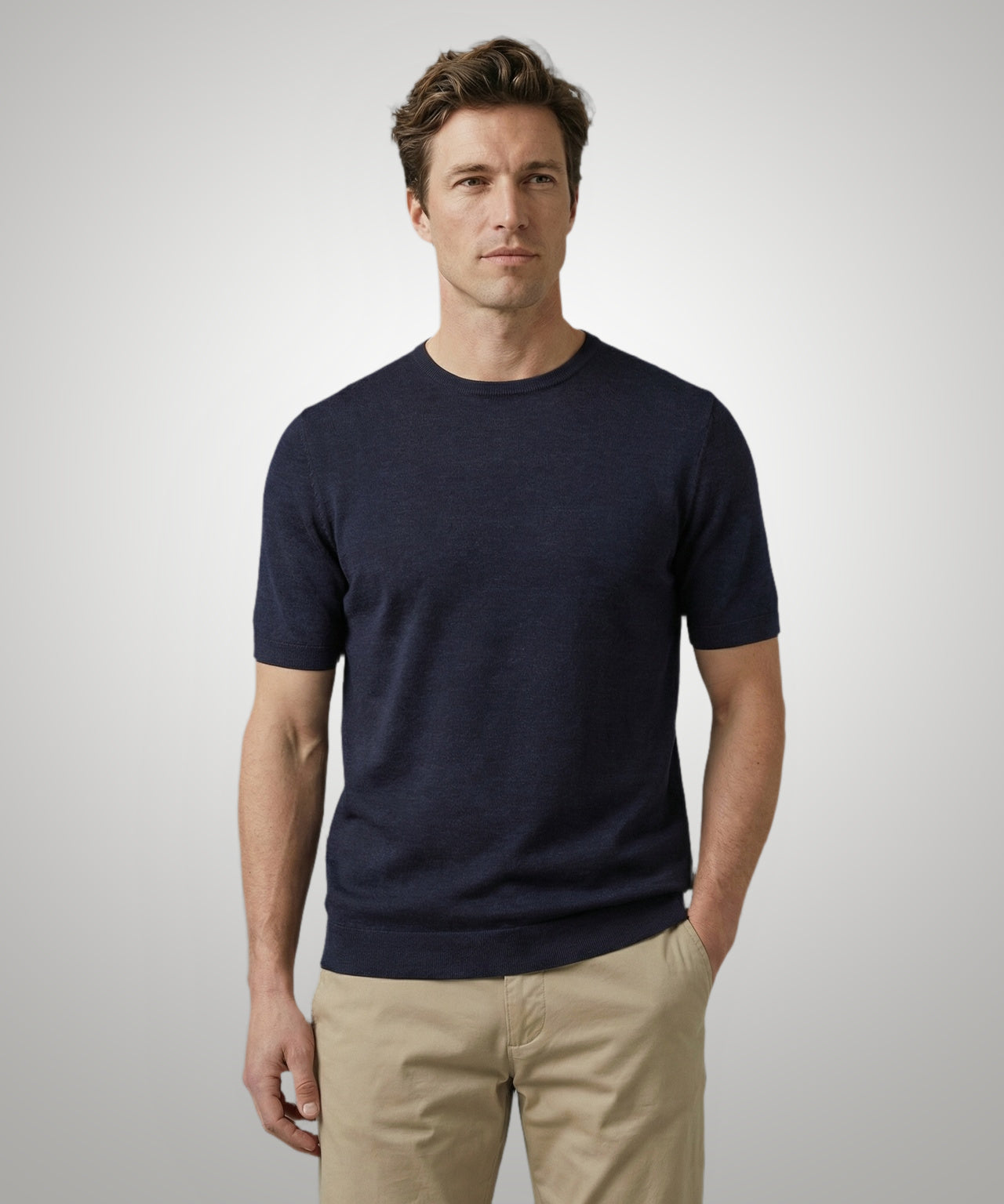 This T-shirt combines refinement with ultimate comfort thanks to its premium extra-fine merino wool. This premium material is known for its breathability, softness, and heat-regulating properties, making it suitable for any season. Its modern simplicity is enhanced by the subtle McGregor logo. With short sleeves, a regular fit, and a classic crew neck, this T-shirt offers a timeless and stylish look.