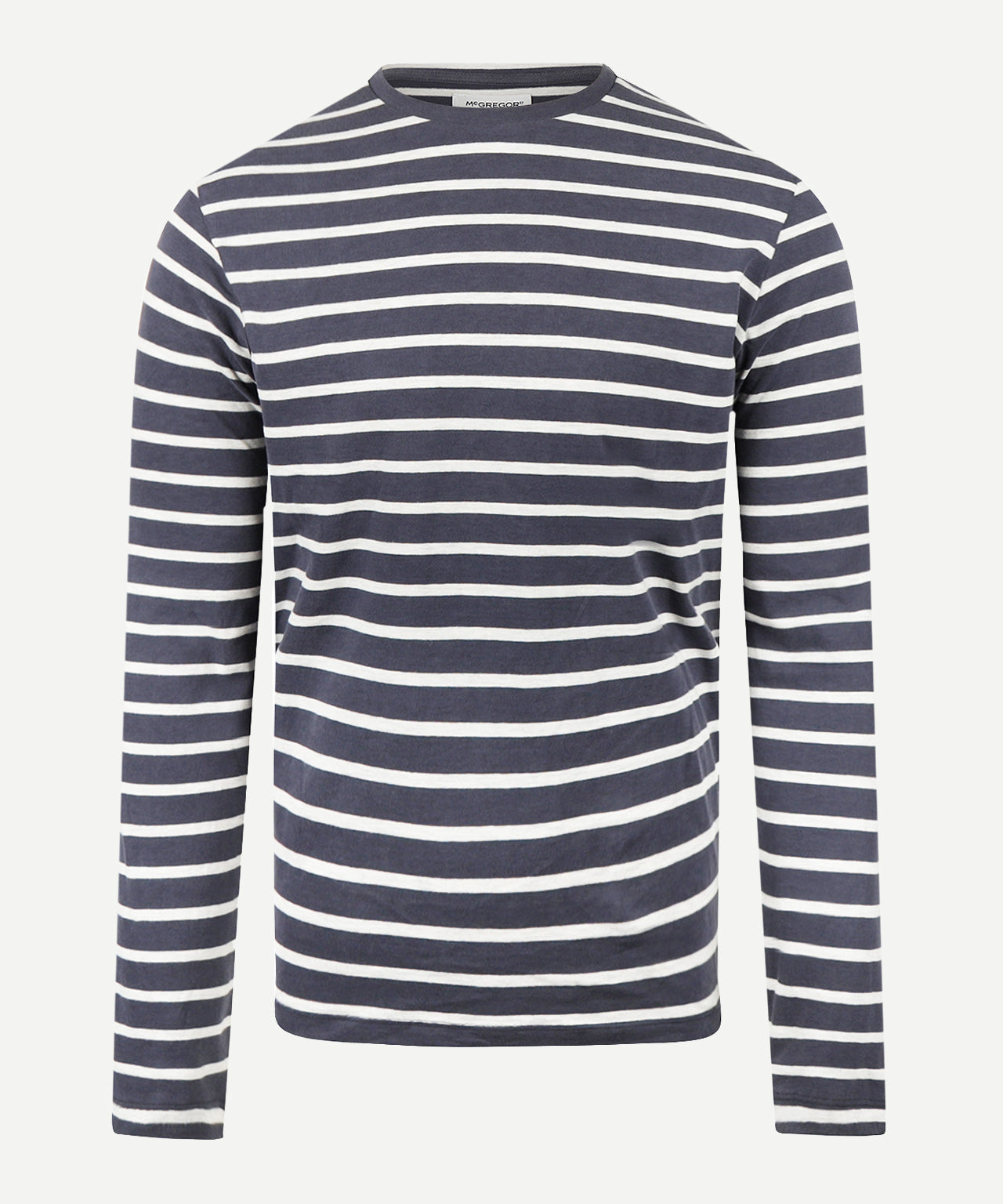 This long-sleeved T-shirt is made of 100% cotton and has a regular fit for comfortable everyday wear. The blue shirt features white stripes, long sleeves, and a ribbed crew neck. A timeless and versatile T-shirt that's easy to style.