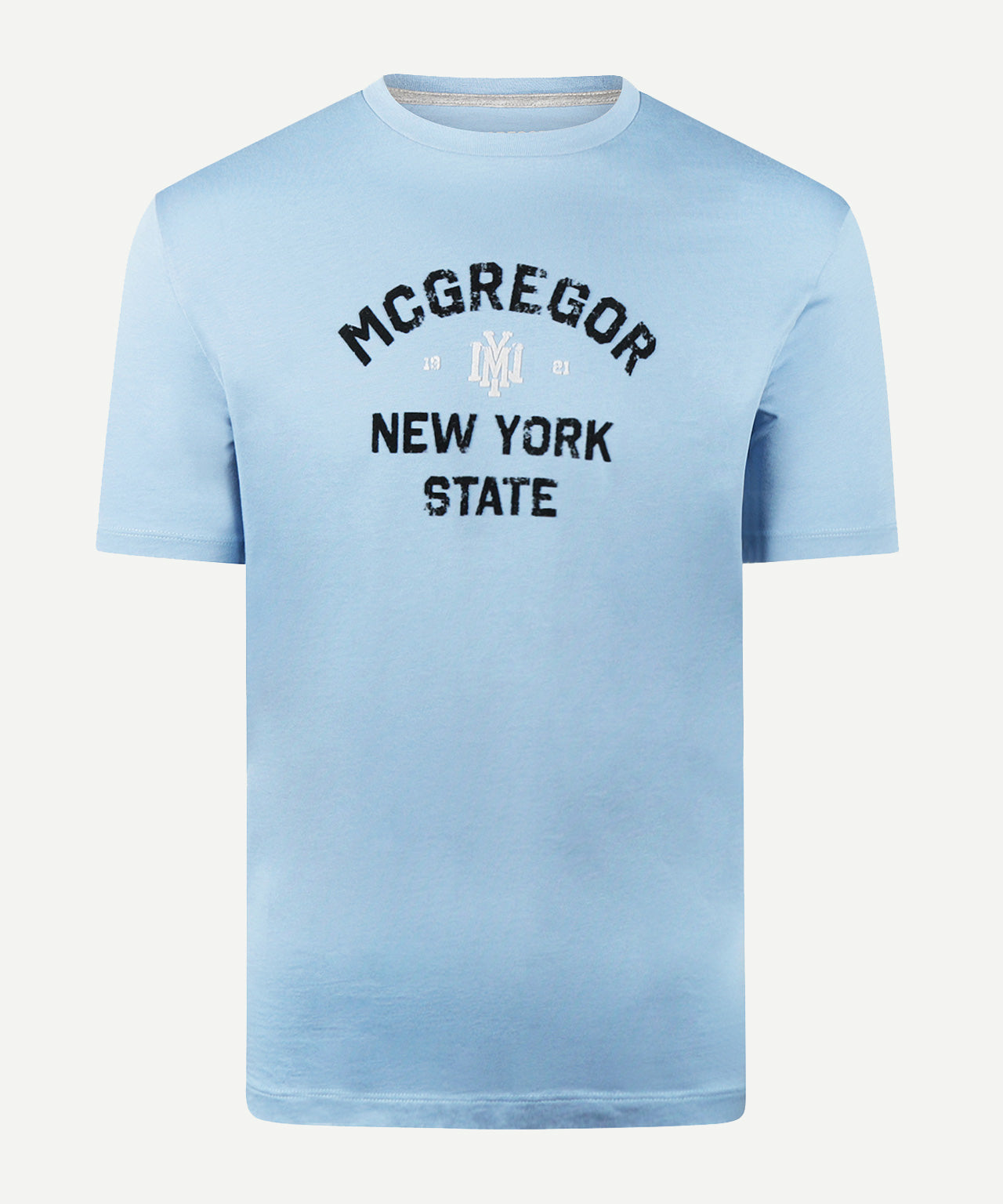 This T-shirt is made of 100% cotton and has a regular fit for comfortable everyday wear. It features short sleeves, a ribbed crew neck, and a suede McGregor logo with "New York" on the chest. A simple and versatile T-shirt that's easy to style.