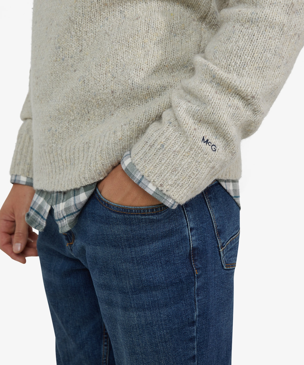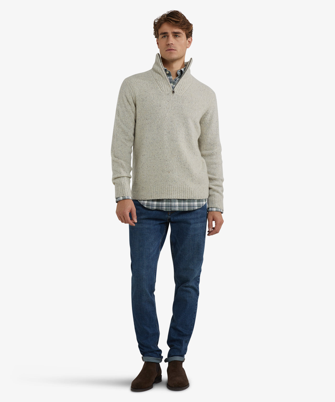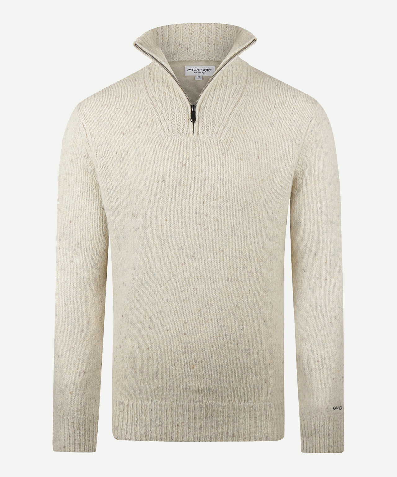 This half-zip fisherman sweater is crafted from a premium blend of 65% merino wool, 30% nylon, and 5% alpaca for a soft, warm, and durable feel. The sweater has a regular fit, long sleeves, a chunky ribbed turtleneck, and ribbed cuffs. The nautical design and subtle McGregor logo on the left sleeve create a timeless, classic look. A versatile sweater that can be worn both casually and stylishly.