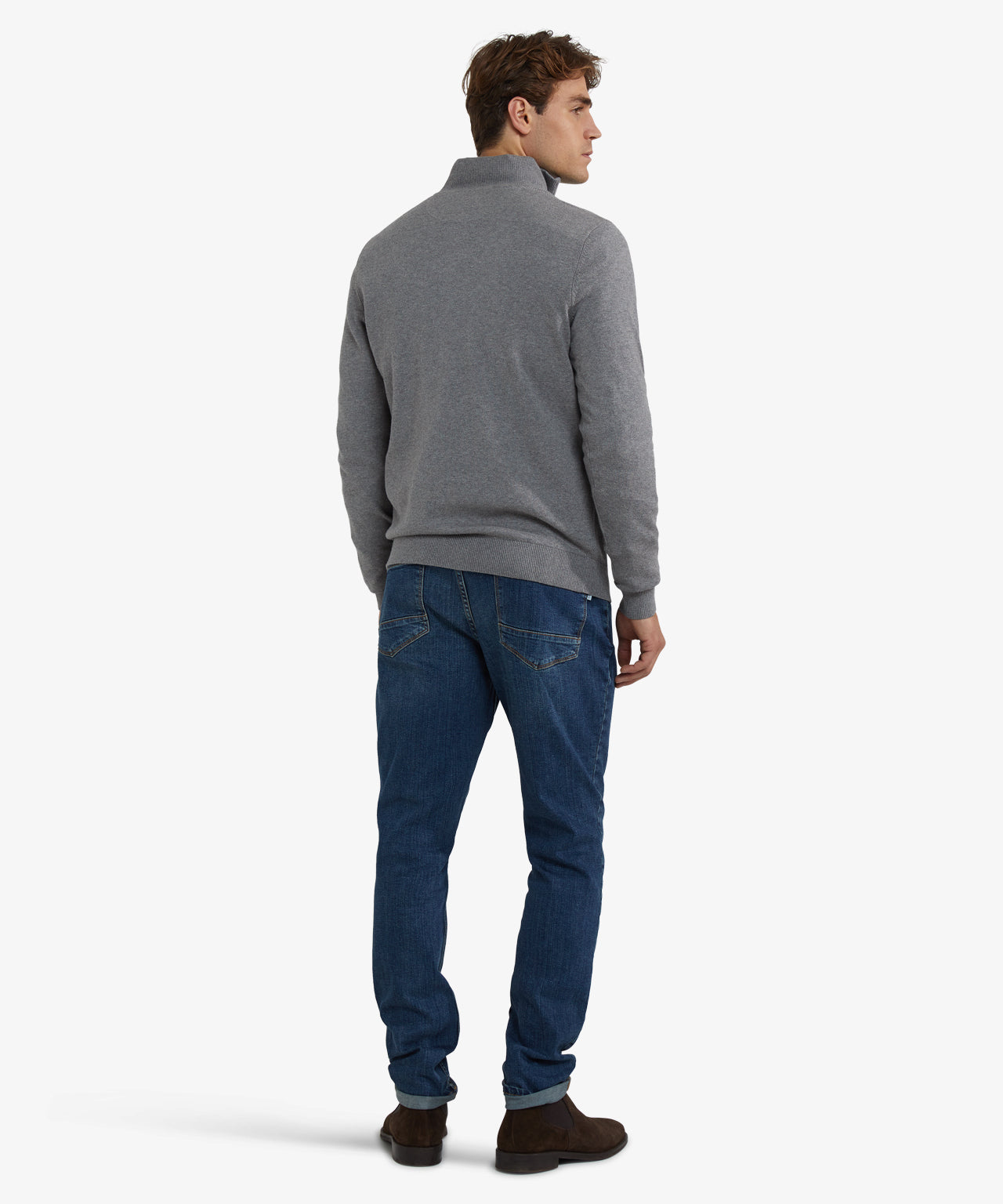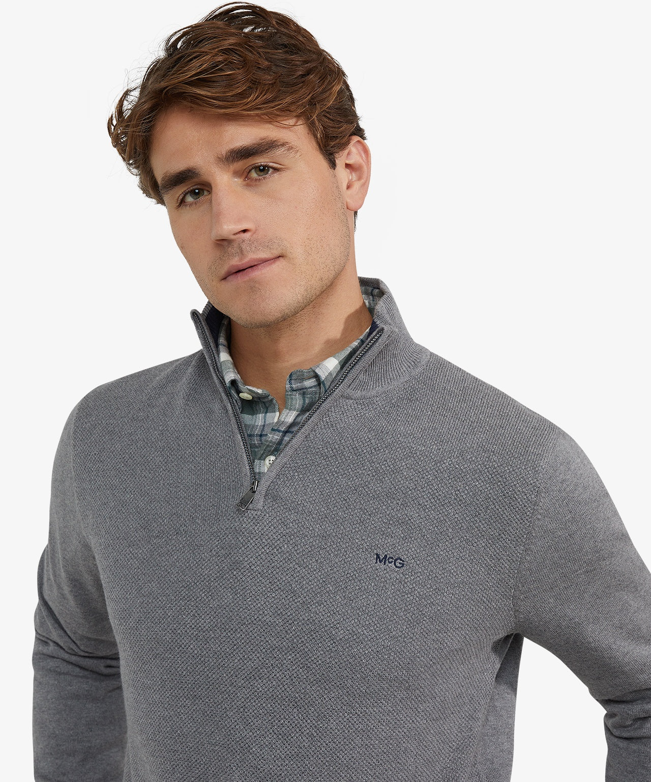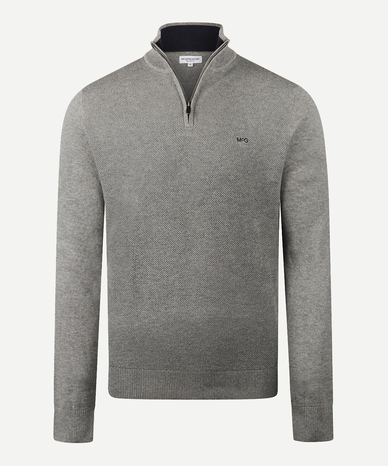 This half-zip sweater is crafted from a premium blend of 70% cotton and 30% merino wool, creating a soft, comfortable, and luxurious feel. It has a regular fit, long sleeves, a ribbed turtleneck, and ribbed cuffs. A subtle McGregor logo is featured on the chest. A versatile and stylish piece that can be dressed up or down.