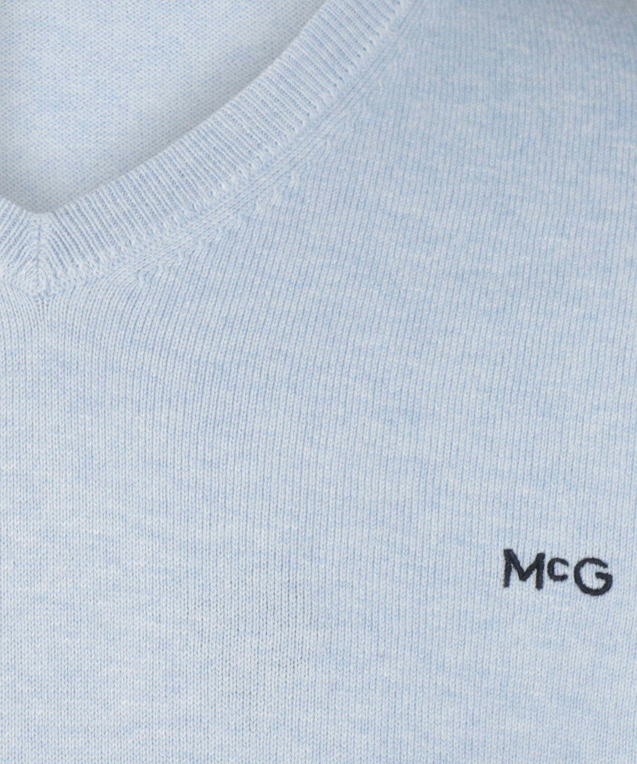 This sweater is crafted from a premium cotton-cashmere blend for a soft and comfortable feel. It features long sleeves, a ribbed V-neck, and ribbed cuffs. A subtle McGregor logo is featured on the chest. A timeless and versatile sweater, perfect for both casual and smart-casual looks.