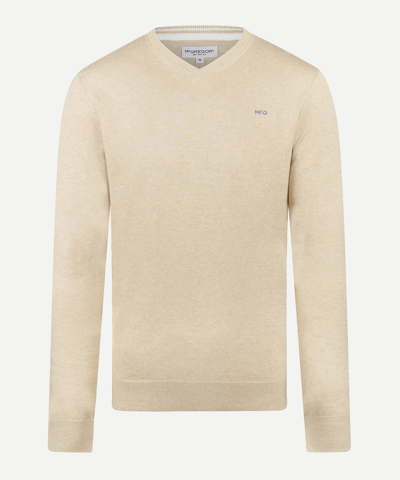 This sweater is crafted from a premium cotton-cashmere blend for a soft and comfortable feel. It features long sleeves, a ribbed V-neck, and ribbed cuffs. A subtle McGregor logo is featured on the chest. A timeless and versatile sweater, perfect for both casual and smart-casual looks.