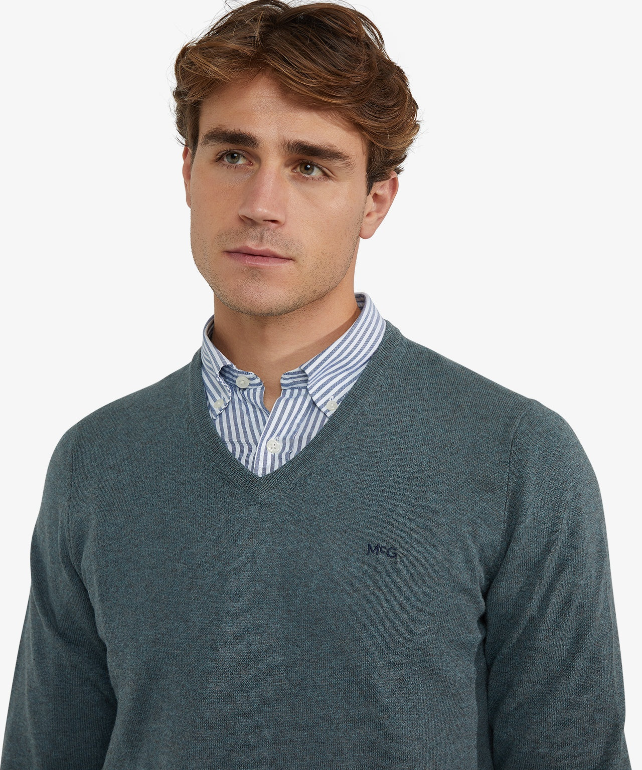 This sweater is crafted from a premium blend of cotton and merino wool for a soft and comfortable feel. It features long sleeves, a ribbed V-neck, and ribbed cuffs. A subtle McGregor logo is featured on the chest. A timeless and versatile sweater, perfect for both casual and smart-casual looks.
