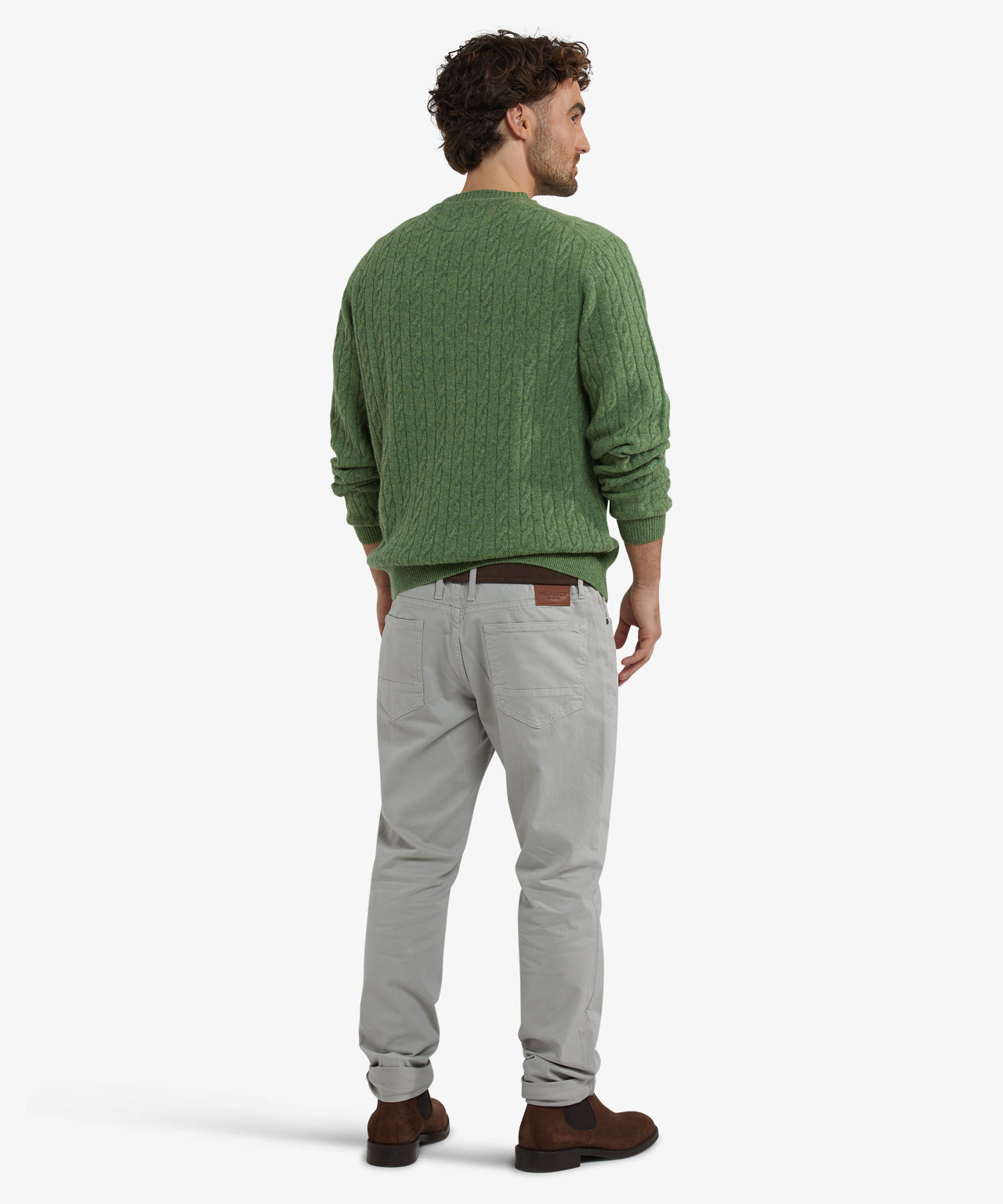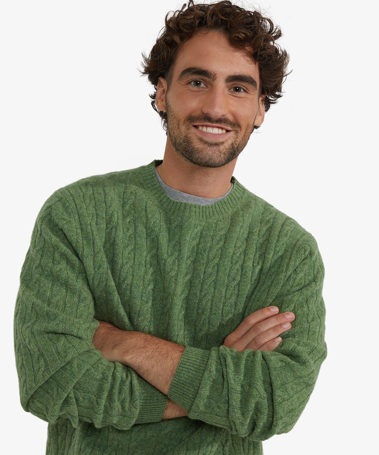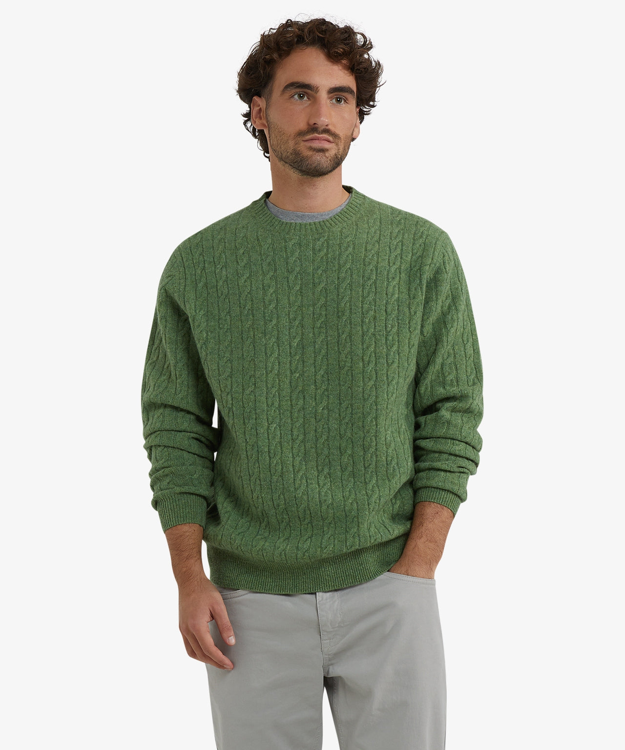 This crew neck sweater is crafted from 100% premium lambswool for a soft and luxurious feel. It has a regular fit, long sleeves, a ribbed crew neck, and ribbed cuffs. The classic cable knit gives it a timeless and stylish look. A versatile and durable piece for any wardrobe.