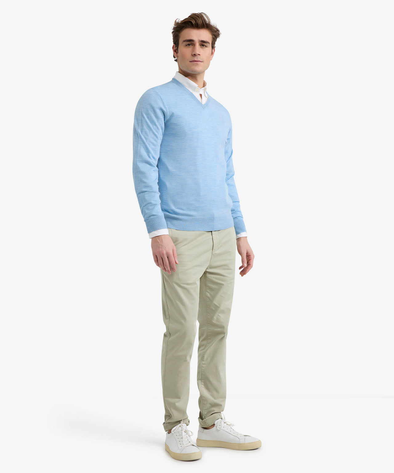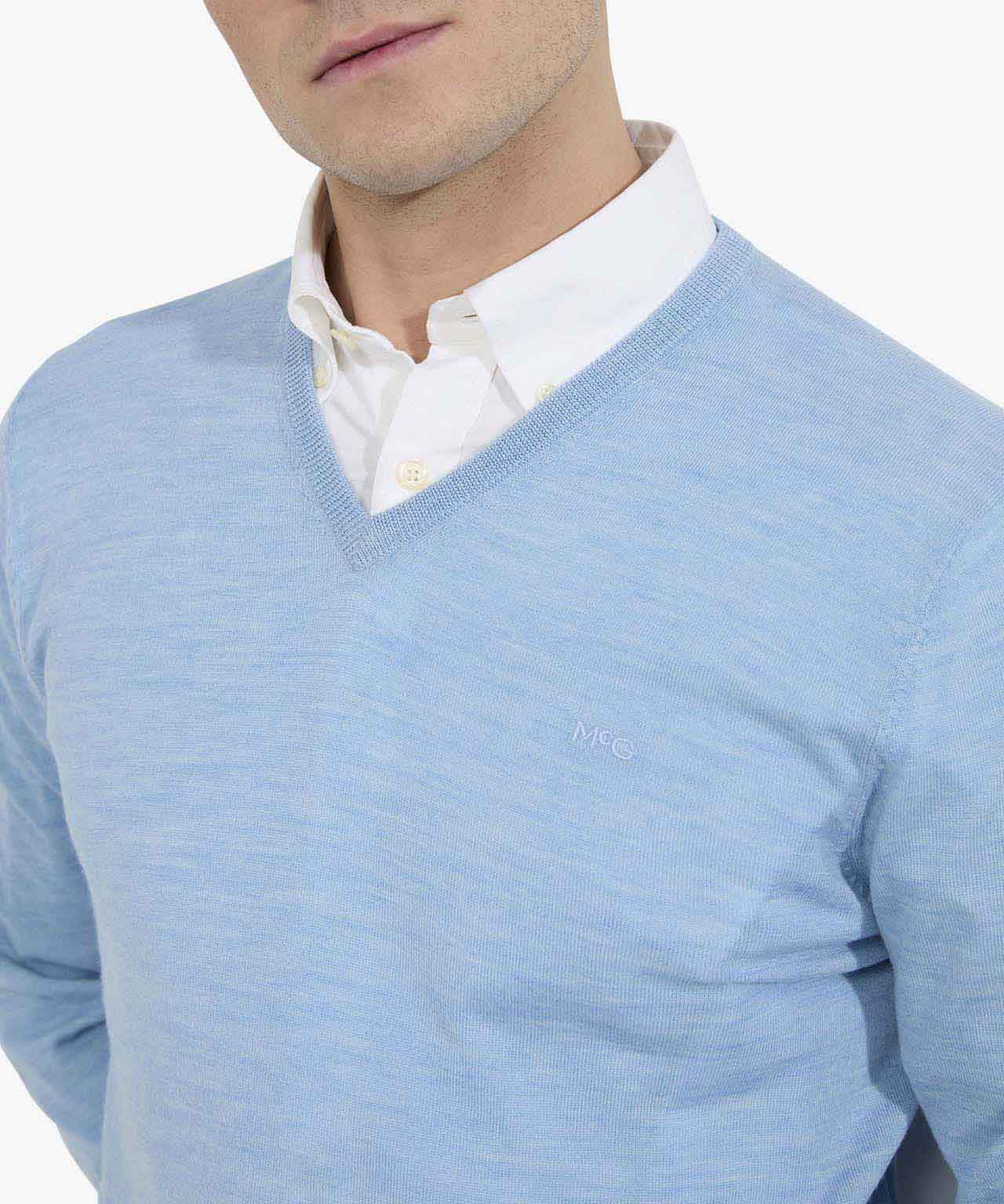 Deze trui is gemaakt van 100% extra fijne merinowol van hoogwaardige kwaliteit, voor een zachte en comfortabele draagervaring. Het item heeft lange mouwen, een ribgebreide V-hals en ribgebreide manchetten. Op de borst bevindt zich een subtiel McGregor-logo.