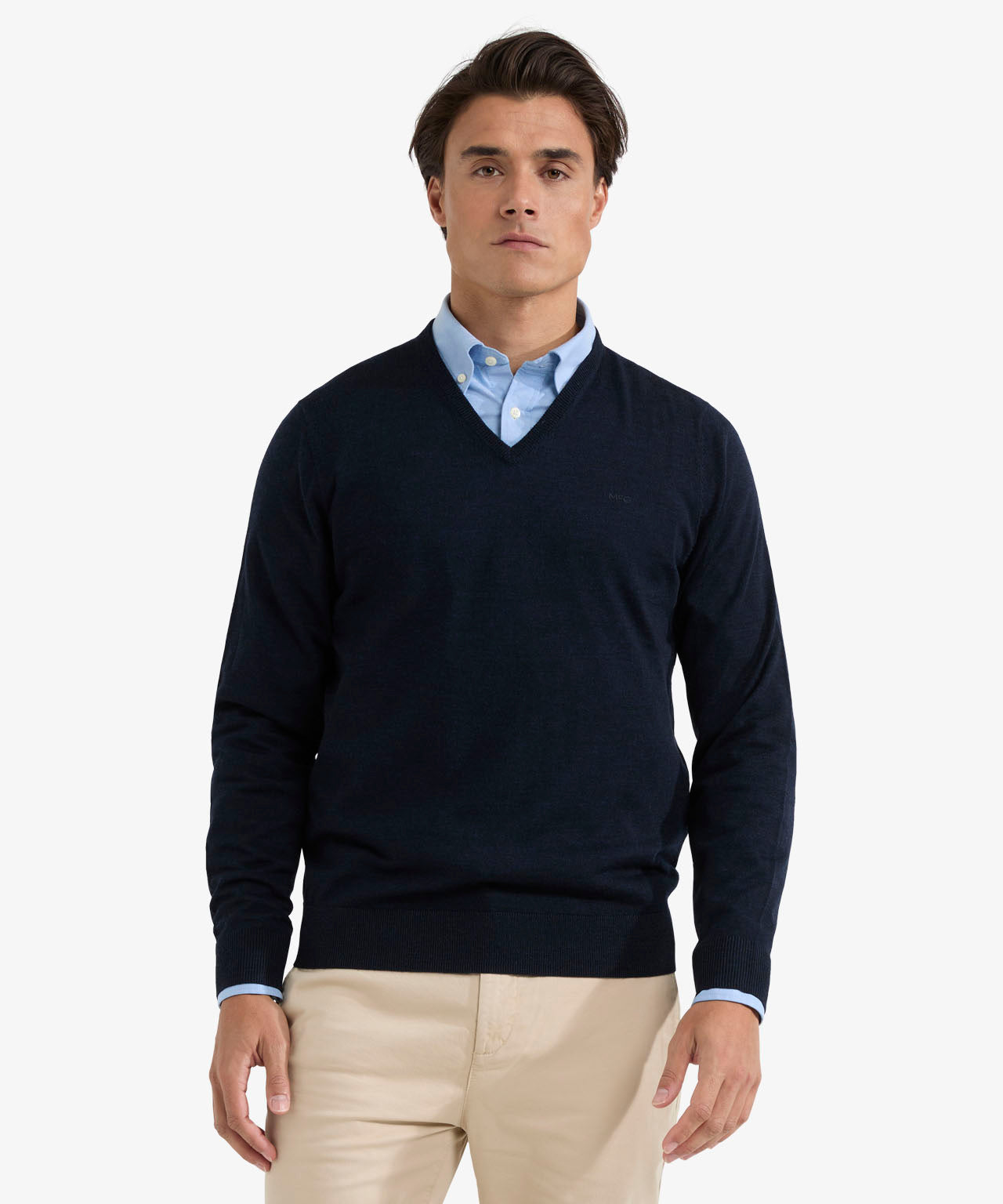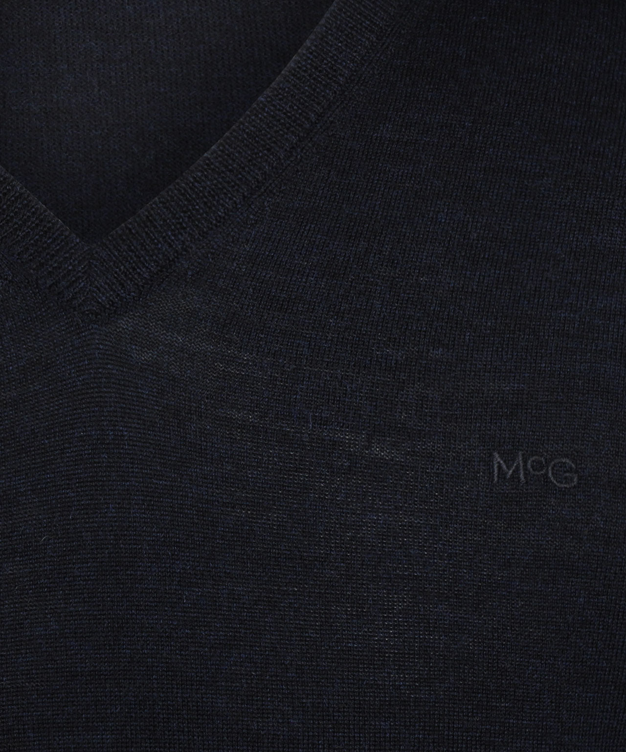 Deze trui is gemaakt van 100% extra fijne merinowol van hoogwaardige kwaliteit, voor een zachte en comfortabele draagervaring. Het item heeft lange mouwen, een ribgebreide V-hals en ribgebreide manchetten. Op de borst bevindt zich een subtiel McGregor-logo.