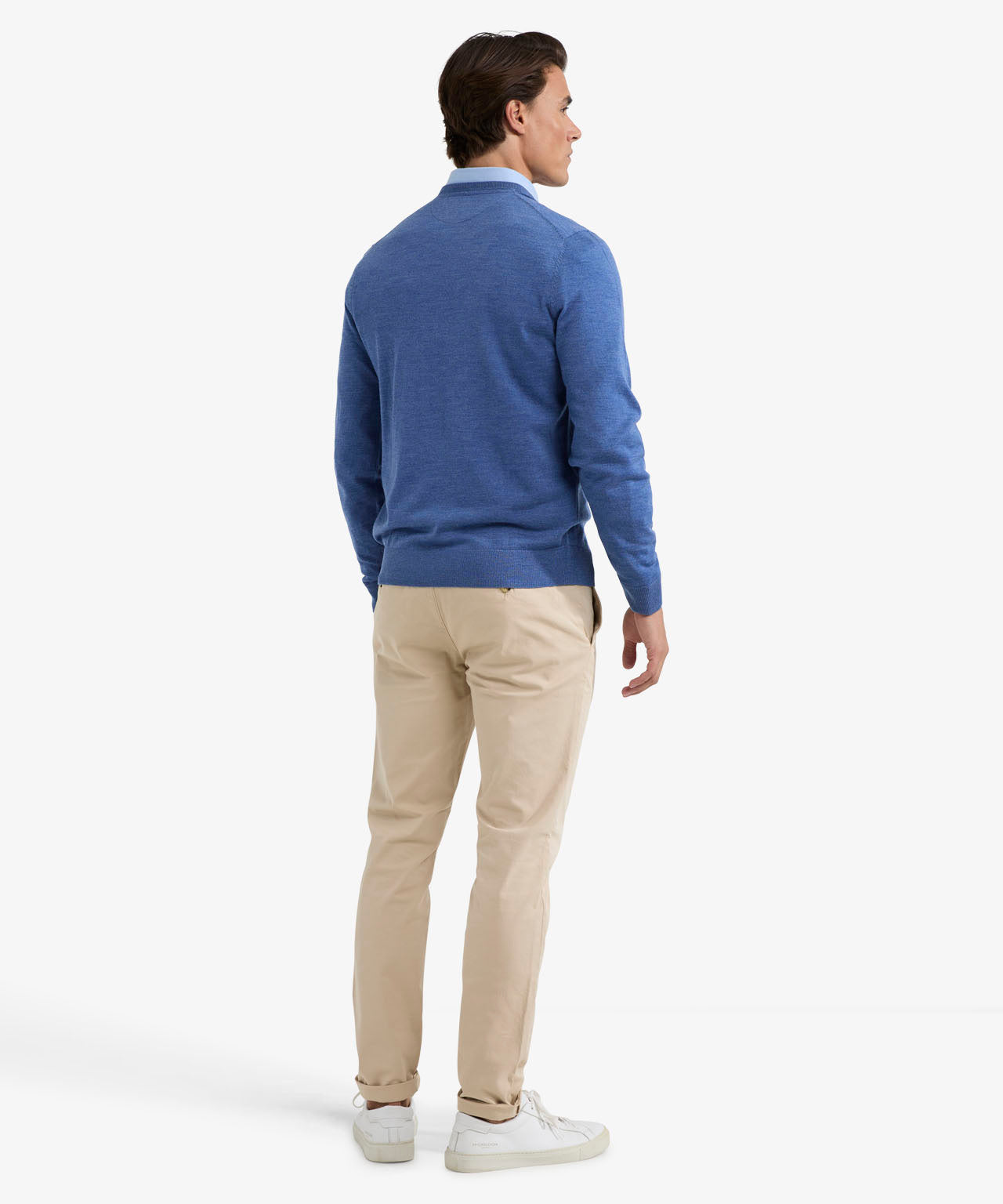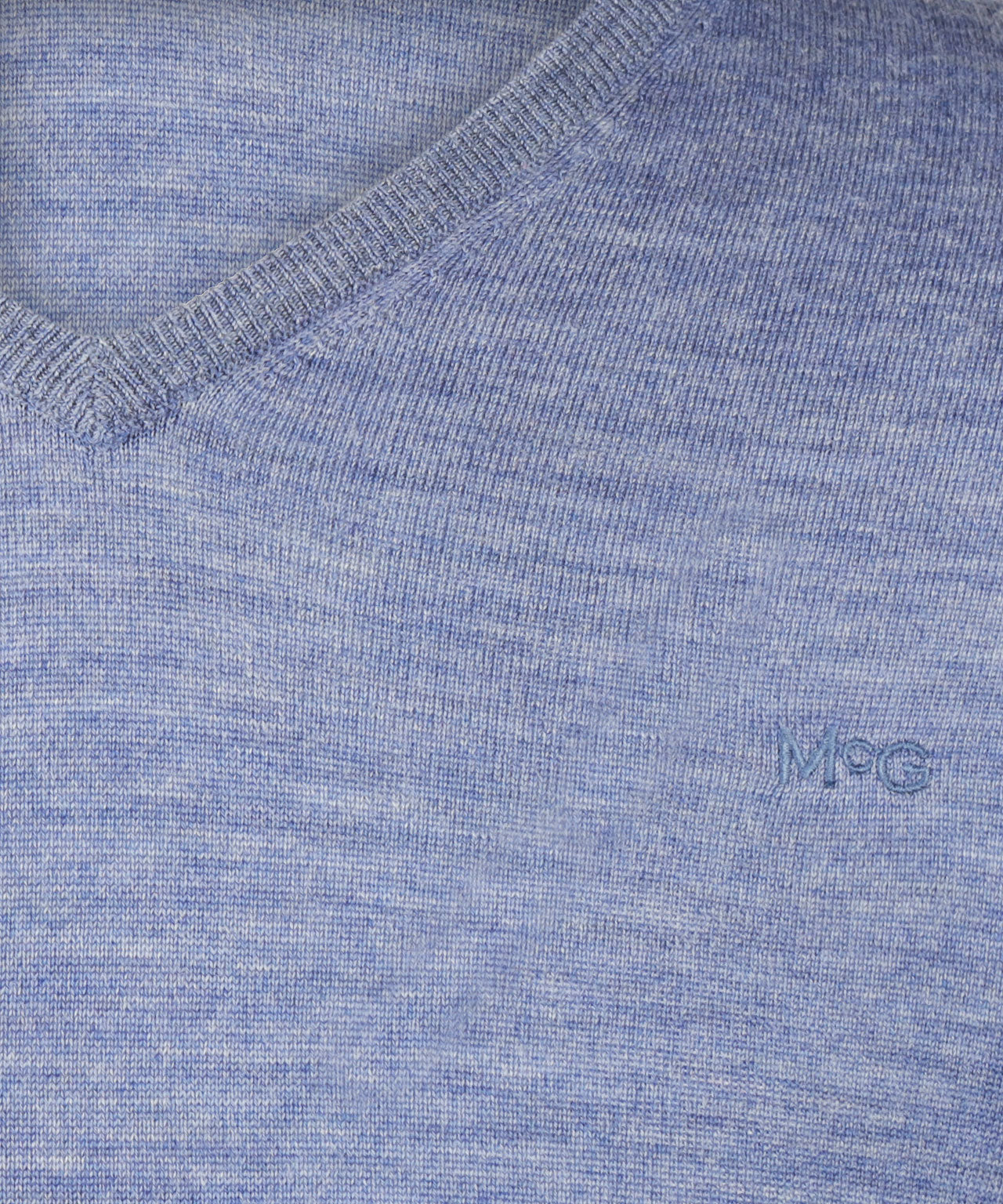 Deze trui is gemaakt van 100% extra fijne merinowol van hoogwaardige kwaliteit, voor een zachte en comfortabele draagervaring. Het item heeft lange mouwen, een ribgebreide V-hals en ribgebreide manchetten. Op de borst bevindt zich een subtiel McGregor-logo.