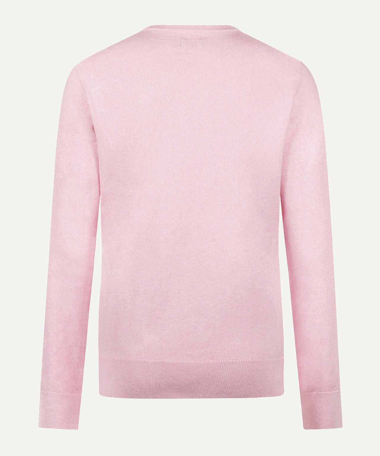 This women's V-neck sweater is crafted from a premium cotton-cashmere blend, offering a soft and comfortable feel. The material feels lightweight and luxurious, while ensuring optimal comfort throughout the day. The sweater features long sleeves, a ribbed V-neck, and ribbed cuffs for a refined finish. Its timeless design makes it stylish to wear season after season.