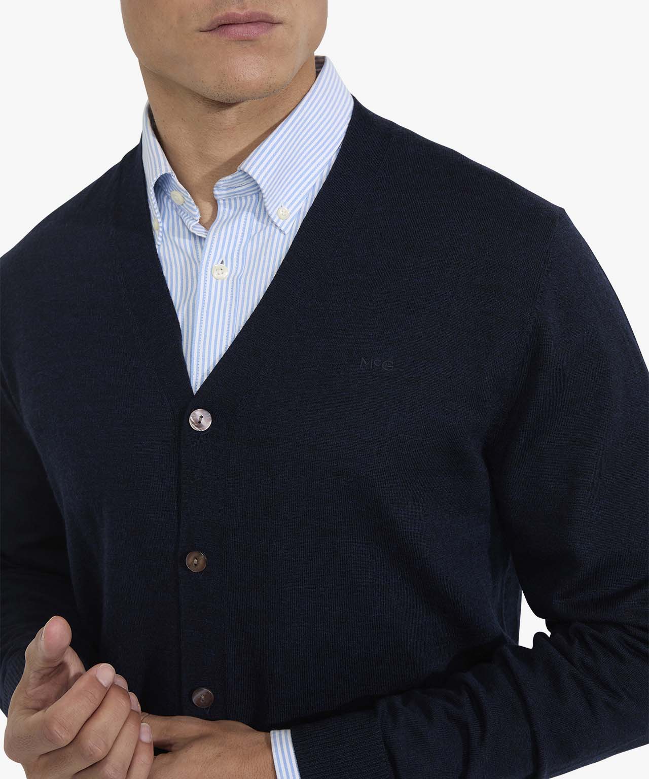 Dit klassieke vest is vervaardigd uit 100% extra fijne merinowol van hoogwaardige kwaliteit, voor een zacht, licht en comfortabel draaggevoel. Het vest heeft een regular fit, lange mouwen en ribgebreide manchetten. De zes knopen aan de voorzijde geven een tijdloze en nette uitstraling. Een veelzijdig en stijlvol item, geschikt voor zowel casual als nettere outfits.