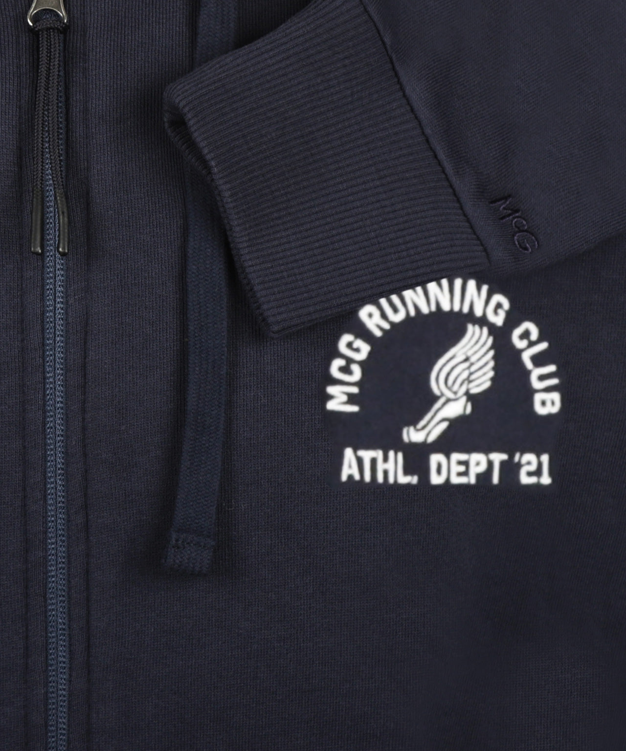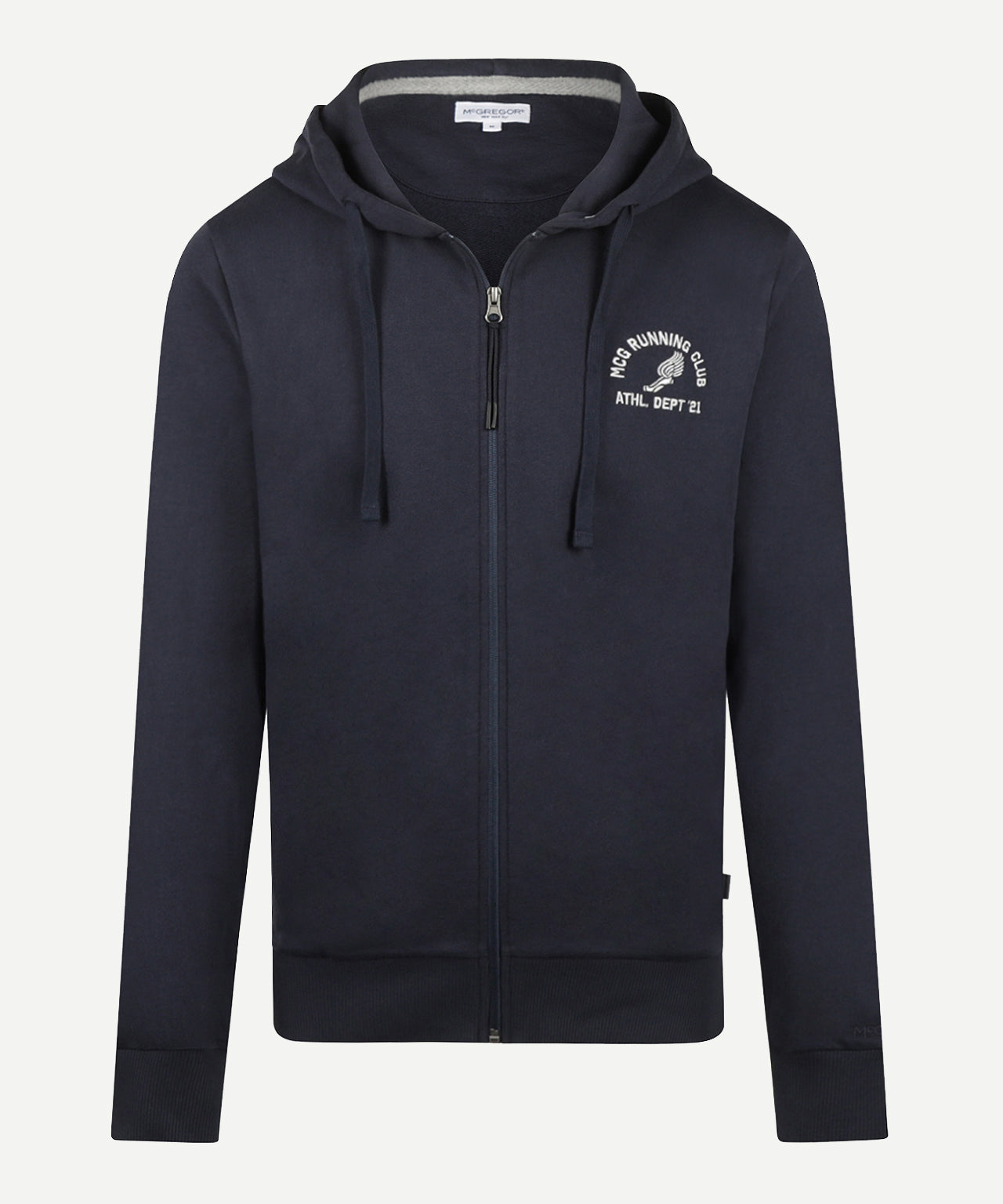 This Zip-Thru Hoodie is made of 100% soft cotton and offers a comfortable regular fit, ideal for everyday wear. It features a practical zip closure, a hood with drawstrings, and ribbed details at the cuffs and hem for a snug fit. The subtle McG Running Club design on the chest gives the hoodie a sporty and authentic look, perfect for a casual yet modern look.